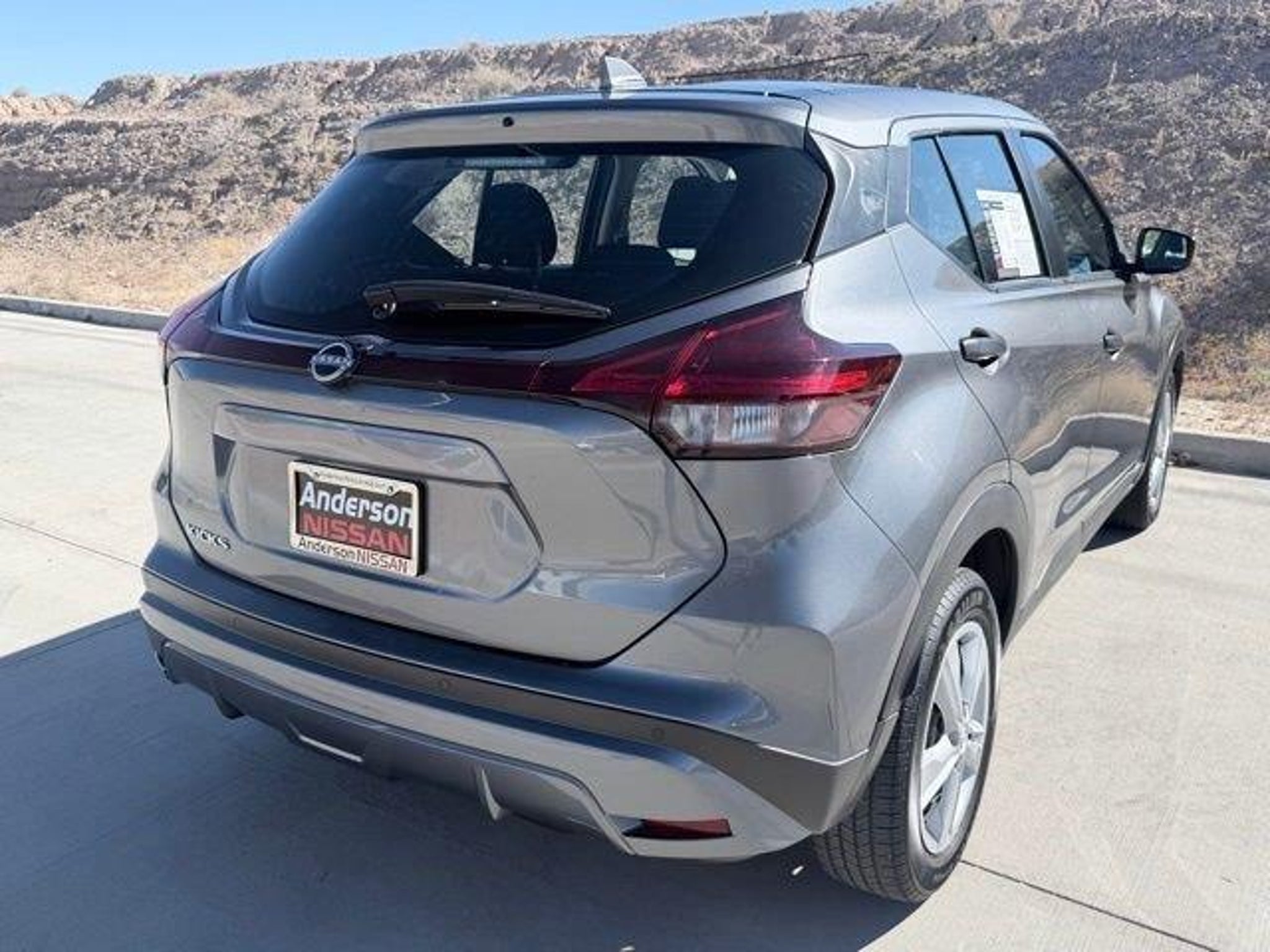 Certified. Gun Metallic 2024 Nissan Kicks S FWD CVT with Xtronic 1.6L 4-Cylinder DOHC 16V Nissan Certified Certified, 16 Steel Wheels w/Full Covers, 3.93 Axle Ratio, 6 Speakers, ABS brakes, Air Conditioning, AM/FM radio, Apple CarPlay/Android Auto, Auto High-beam Headlights, Blind Spot Warning, Brake assist, Bumpers: body-color, Carpeted Floor Mats w/Cargo Mat, Cloth Seat Trim, Driver door bin, Driver vanity mirror, Driver's Seat Mounted Armrest, Dual front impact airbags, Dual front side impact airbags, Electronic Stability Control, Front anti-roll bar, Front Bucket Seats, Front reading lights, Front wheel independent suspension, Fully automatic headlights, Illuminated entry, Knee airbag, Low tire pressure warning, Occupant sensing airbag, Outside temperature display, Overhead airbag, Panic alarm, Passenger door bin, Passenger vanity mirror, Power door mirrors, Power steering, Power windows, Radio data system, Radio: AM/FM Audio System, Rear Parking Sensors, Rear reading lights, Rear side impact airbag, Rear window defroster, Rear window wiper, Remote keyless entry, Speed control, Split folding rear seat, Sport steering wheel, Steering wheel mounted audio controls, Tachometer, Telescoping steering wheel, Tilt steering wheel, Traction control, Trip computer, Variably intermittent wipers. 31/36 City/Highway MPG Nissan Certified Details: * Warranty Deductible: $100 * Vehicle History * Limited Warranty: 84 Month/100,000 Mile (whichever occurs first) * Transferable Warranty * 167 Point Inspection * 7 Year/100,000 Mile Limited Warranty, 24/7 Hour Roadside Assistance, Carfax Vehicle History Report, Plus 1 Year Pre-Paid Maintenance Included. Gas Powered Nissan Models Only. * Roadside Assistance WHY BUY FROM ANDERSON: All Anderson pre-owned vehicles include a one-year/15,000 mile (whichever occurs first) vehicle maintenance plan when the vehicle is serviced at an Anderson Auto Group dealership. Out of town customers will be accommodated with free shuttle service from Las Vegas and Phoenix airports and if an overnight stay is needed, discounted nightly rates are available from local hotels. We welcome you to come in and enjoy a positive buying experience and look forward to you joining the Anderson family of customers. DISCLAIMER: *Prices, options, specifications and images shown are subject to certain qualifications and availability. Pricing information is not final and may not include taxes, registration, finance and purchase fees. Please confirm vehicle availability and pricing information by calling us at 928-764-1700 or emailing our internet sales department at nissansales@andersonauto.com.