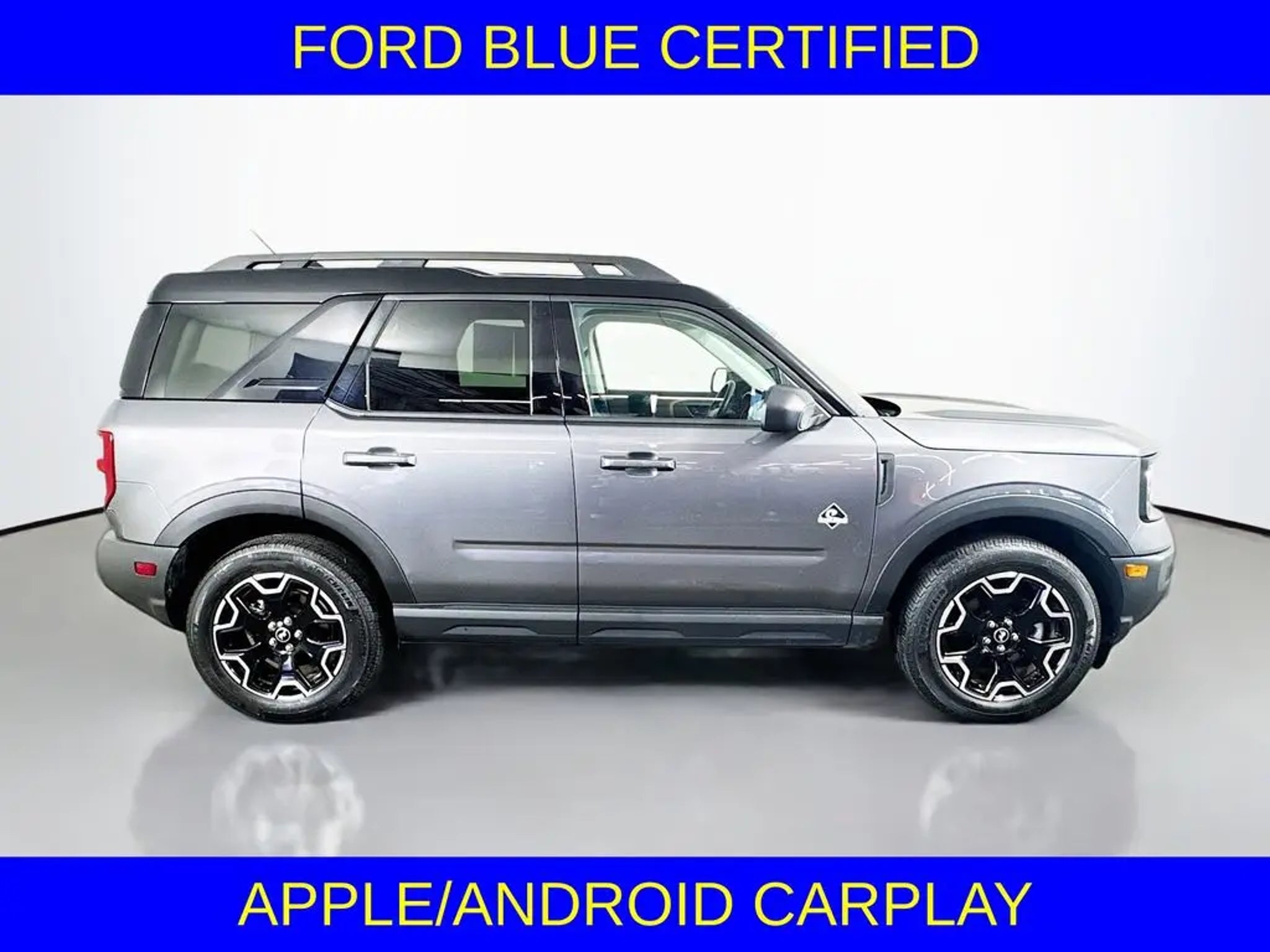 Discover the 2025 Ford Bronco Sport Outer Banks, a rugged and refined SUV that blends style, capability, and technology. This exceptional vehicle, with its sleek Gray exterior, is more than just a mode of transportation - it's a gateway to adventure. - BLUETOOTH - BACK UP CAMERA - APPLE/ANDROID CARPLAY - CLEAN CARFAX - DAYTIME RUNNING LAMPS (DRL) - Equipment Group 300A Powered by a 1.5L EcoBoost engine and equipped with an 8-Speed Automatic transmission and 4WD, the Bronco Sport Outer Banks delivers an impressive 25 city/30 highway MPG, making it both efficient and capable. Step inside and experience the comfort of premium features, including heated front seats, a heated steering wheel, and dual-zone automatic climate control. The Bronco Sport's advanced technology keeps you connected and in control. The SYNC 4 infotainment system with enhanced voice recognition, combined with Apple CarPlay and Android Auto, seamlessly integrates your smartphone. Rear parking sensors and a backup camera provide added peace of mind when maneuvering in tight spaces. This Ford Bronco Sport Outer Banks is more than just a vehicle - it's a gateway to a life of adventure. With its rugged capabilities and refined amenities, it's the perfect companion for your next journey, whether it's a weekend getaway or a daily commute. Ford Blue Certified vehicles undergo a rigorous 139-point inspection, ensuring you can drive with confidence. Enjoy the added benefits of Roadside Assistance, a $100 Warranty Deductible, a Transferable Warranty, and a Limited Warranty that extends 3 months/4,000 miles beyond the original warranty. Plus, you'll receive 11,000 FordPass Rewards Points to use towards your first maintenance visit. All of our vehicles come standard with a professional inspection by certified technicians and most vehicles qualify for our LIFETIME WARRANTY! We also price our vehicles very aggressive to make sure we have fresh inventory for you. Our vehicles typically sell within 20-30 days upon stocked in so if you see something you like give us a call ASAP. Always ask if you qualify for our $1,500 trade in voucher!