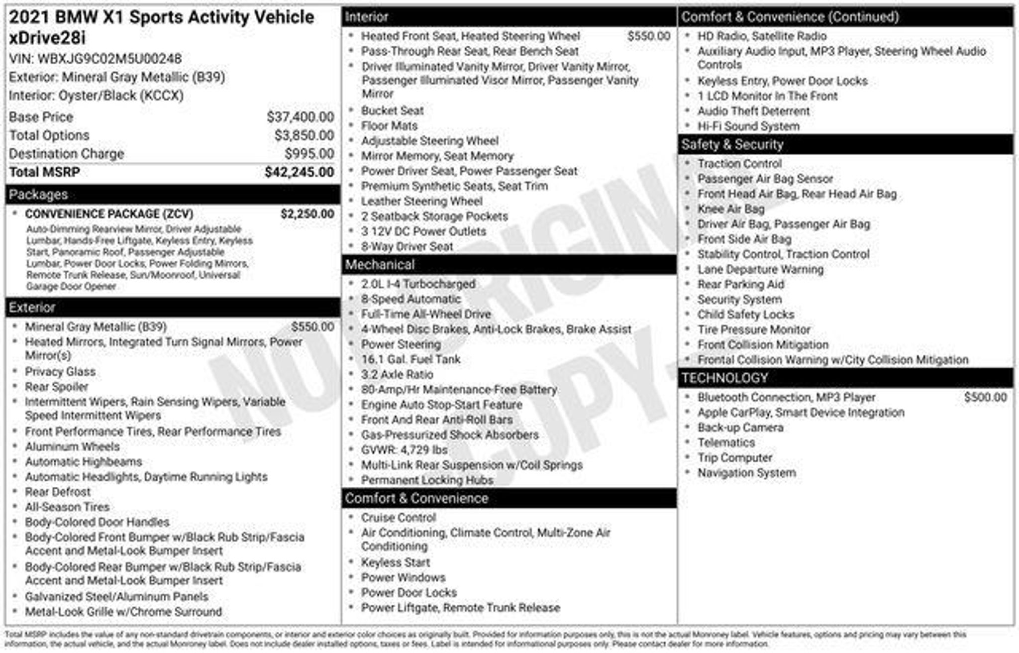 At Jenkins and Wynne each vehicle has a Safety Inspection and an Oil and Filter Change. In addition, any vehicle over 50k miles completes a Compression Check- checking the engine and transmission components. This stunning 2021 BMW X1 xDrive28i offers an impressive array of premium features that elevate the driving experience. Showcasing a sleek Gray exterior, this X1 boasts a powerful 2.0L 4-Cylinder DOHC 16V TwinPower Turbo engine paired with an 8-Speed Automatic transmission and AWD capabilities. With an exceptional fuel economy of 23 City / 31 Highway MPG, this BMW delivers both performance and efficiency. - **CLEAN AUTOCHECK / NO ACCIDENTS** - **LEATHER SEATS** - **REAR BACKUP CAMERA** - **BLUETOOTH** - **2 SETS OF KEYS** - **USB CONNECTION** - **HEATED SEATS** - Convenience Package - Wireless Charging - Panoramic Moonroof - Power Liftgate - Apple CarPlay Compatibility - Heated Steering Wheel - Navigation System Designed with the discerning driver in mind, this BMW X1 is packed with advanced technology and premium amenities. The Convenience Package includes features like Auto-Dimming Mirrors, Comfort Access Keyless Entry, and a Panoramic Moonroof, elevating your driving experience. The Wireless Charging and Apple CarPlay Compatibility ensure seamless connectivity, while the Heated Steering Wheel and Heated Front Seats provide added comfort on even the coldest days. The spacious and well-appointed interior of the X1 offers ample room for both passengers and cargo, making it an exceptional choice for families or those with active lifestyles. With its refined handling, impressive power, and comprehensive suite of features, this BMW X1 xDrive28i is a true standout in the luxury compact SUV segment. We invite you to experience the exceptional quality and performance of this 2021 BMW X1 xDrive28i for yourself. Schedule a test drive today and discover the unparalleled driving dynamics and premium amenities that make this vehicle a true leader in its class. Family Owned and Operated in Clarksville since 1953! Ask us about our '48 Hour Love It or Leave It- Price and Product Guarantee!'