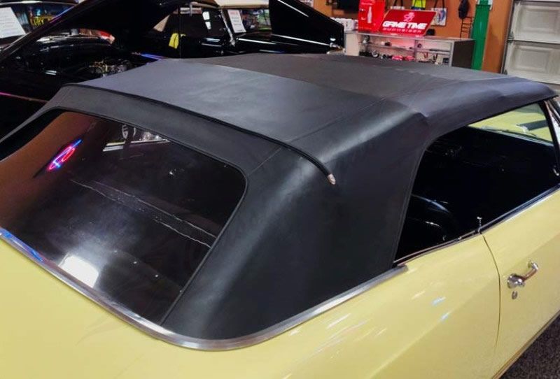 All trim and chrome have been restored to show quality. New paint to factory color, butternut yellow with a new black convertible top. Has the black SS rear trunk panel, and black front grille with two chrome bars and SS bagging are all correct for '67. The original style steel wheels and caps give this restomod that sleeper appeal.