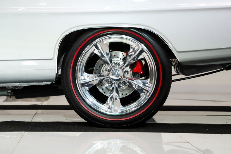 INTERIOR: Wow-this red with white stripes, Super Sport interior is absolutely stunning! It has a fresh, vibrant look with all new firm cushions under reproduction seat upholstery. The door panels, armrests, and window cranks are all new, and the bright red carpet really makes everything pop. A brand new center console houses a billet 5-speed shifter, adding a perfect blend of classic and performance. The headliner and visors fit tight, the dash pad is new, and the instrument panel has been replaced with upgraded retro-style digital/analog gauges. It also features a retro stereo with kick panel speakers. The interior is virtually flawless from carpet to headliner, and it's been updated with a modern wiring system using push-button fuses. A tilt column with a custom suede-wrapped wheel is the perfect finishing touch.
