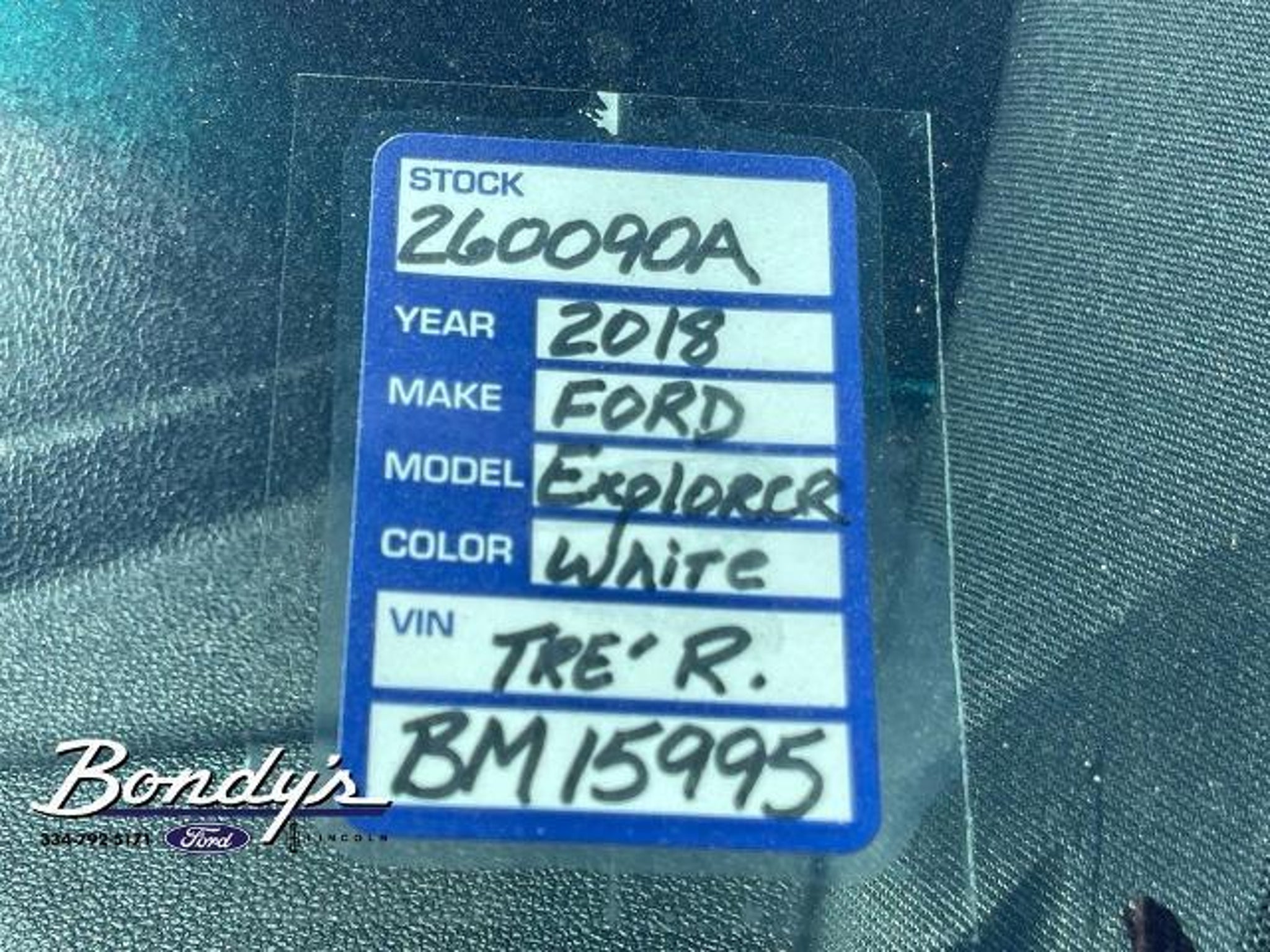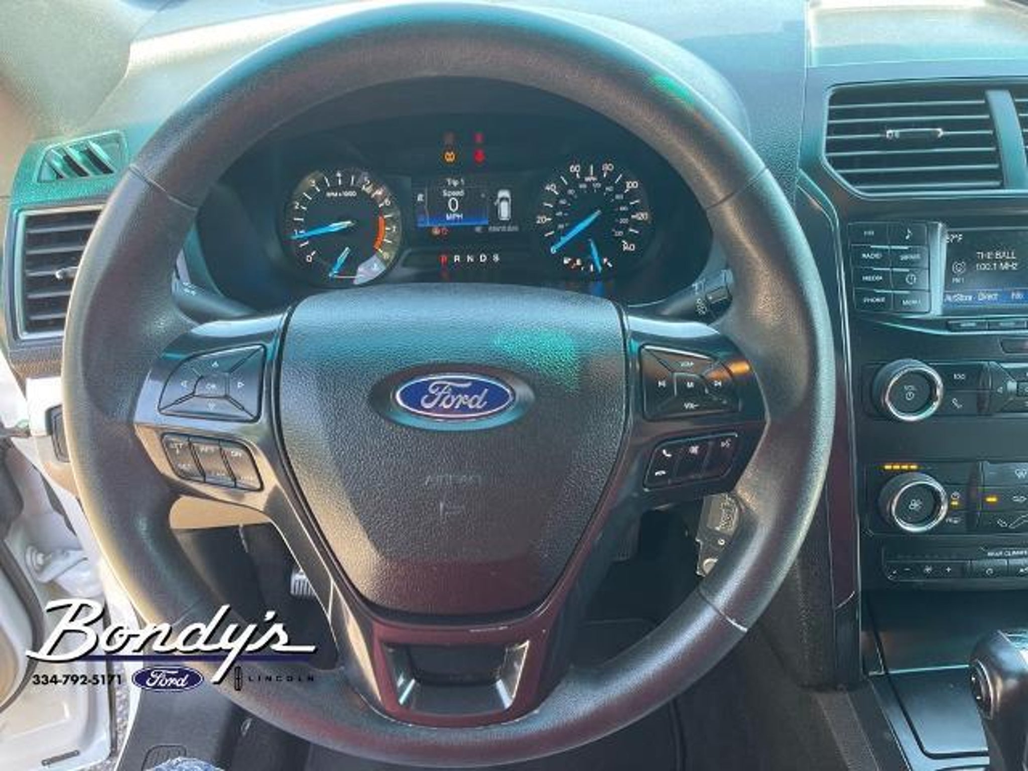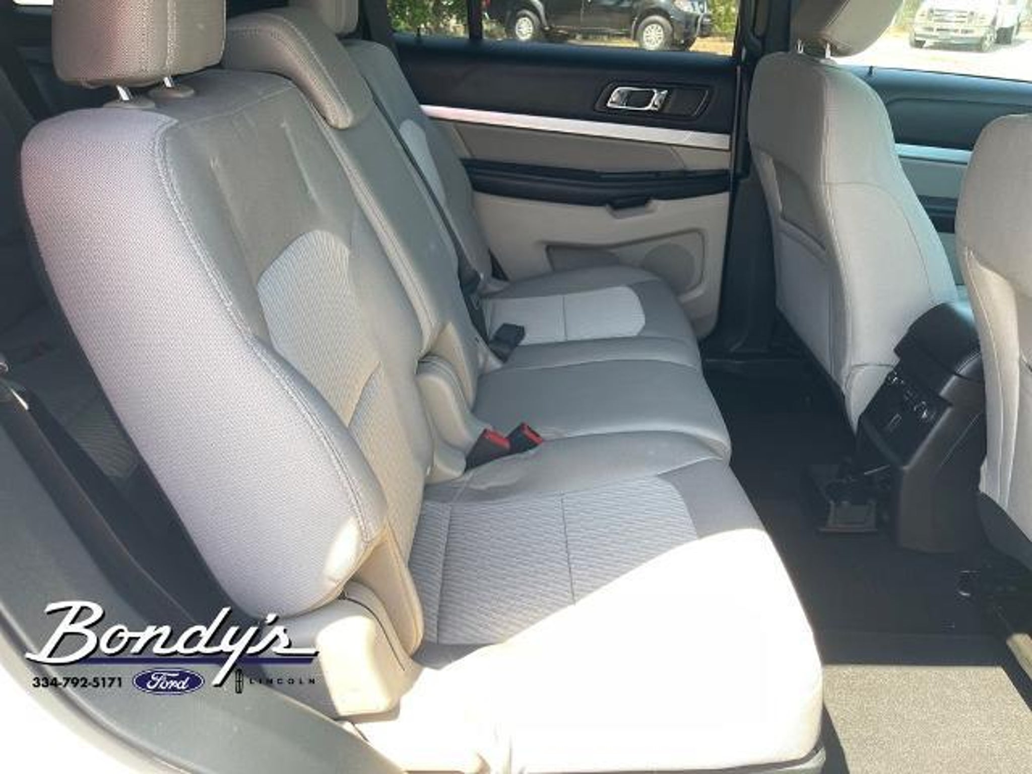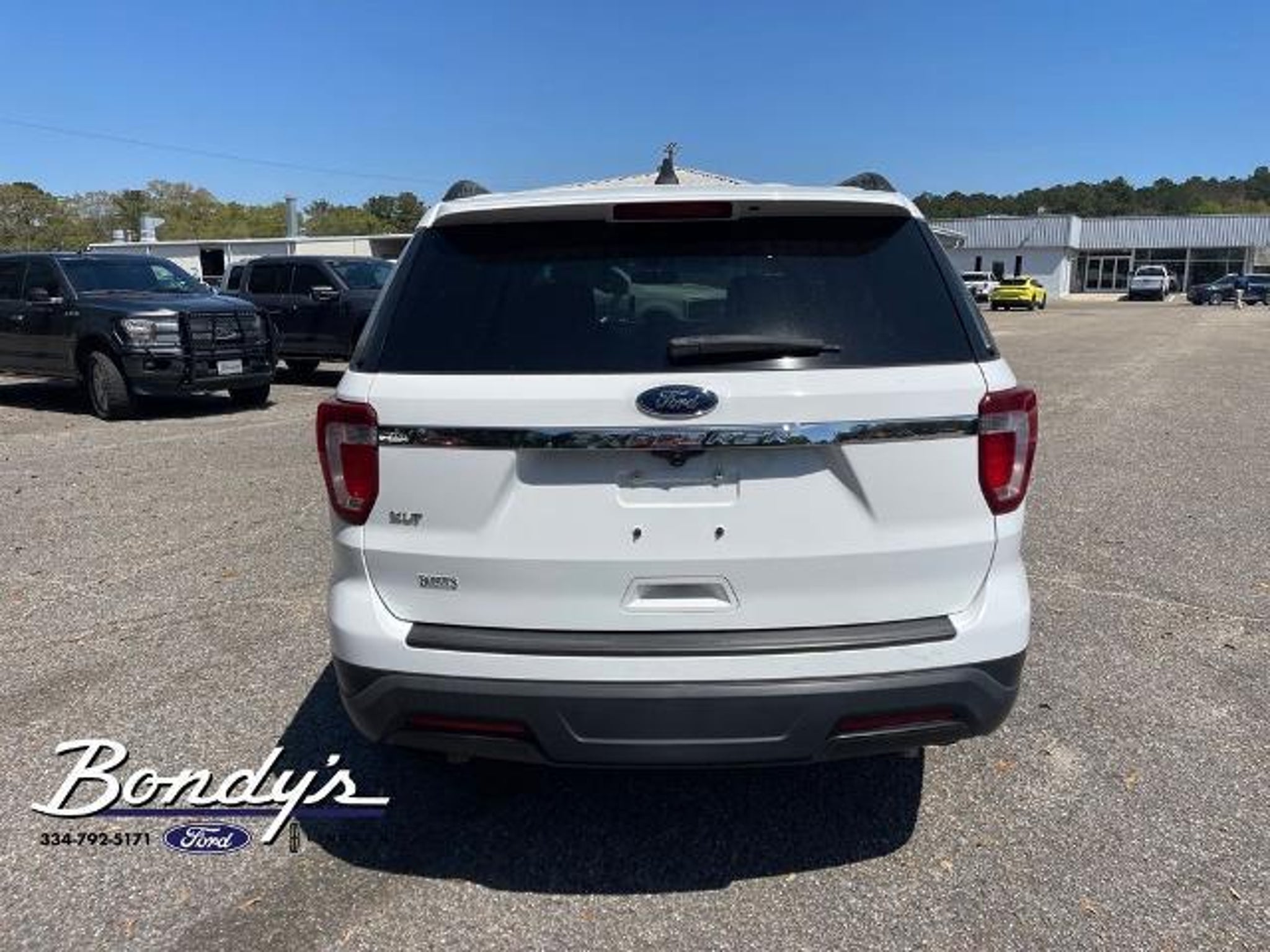 CARFAX One-Owner. 2018 Ford Explorer Base 18 Painted Aluminum Wheels, 3.39 Non-Limited-Slip Axle Ratio, 3rd row seats: split-bench, 4-Wheel Disc Brakes, 6 Speakers, ABS brakes, Air Conditioning, Alloy wheels, AM/FM radio, AM/FM Stereo, Brake assist, Bumpers: body-color, Cloth Bucket Seats, Compass, Delay-off headlights, Driver door bin, Driver vanity mirror, Dual front impact airbags, Dual front side impact airbags, Electronic Stability Control, Emergency communication system: 911 Assist, Equipment Group 100A, Exterior Parking Camera Rear, Four wheel independent suspension, Front anti-roll bar, Front Bucket Seats, Front Center Armrest, Front License Plate Bracket, Front reading lights, Fully automatic headlights, Heated door mirrors, Illuminated entry, Knee airbag, Low tire pressure warning, Occupant sensing airbag, Outside temperature display, Overhead airbag, Overhead console, Panic alarm, Passenger door bin, Passenger vanity mirror, Power door mirrors, Power driver seat, Power steering, Power windows, Rear air conditioning, Rear anti-roll bar, Rear reading lights, Rear seat center armrest, Rear window defroster, Rear window wiper, Remote keyless entry, Roof rack: rails only, SiriusXM Satellite Radio, Speed control, Speed-sensing steering, Speed-Sensitive Wipers, Split folding rear seat, Spoiler, Steering wheel mounted audio controls, SYNC Communication & Entertainment System, Tachometer, Telescoping steering wheel, Tilt steering wheel, Traction control, Trip computer, Variably intermittent wipers. Oxford White FWD 3.5L 6-Cylinder SMPI DOHC 6-Speed Automatic with Select-Shift THIS VEHICLE IS LOCATED AT BONDY'S FORD LINCOLN AT 3615 ROSS CLARK CIRCLE DOTHAN, AL 36303. PLEASE CALL US AT 800-239-5171 TO ASK US ANY QUESTIONS! MON-FRI SALES IS HERE FROM 8:30 TO 7:00 AND SAT 8:30 TO 6:00. WE ARE CLOSED ON SUNDAYS. Call Toll Free 800-239-5171 or 334-792-5171.