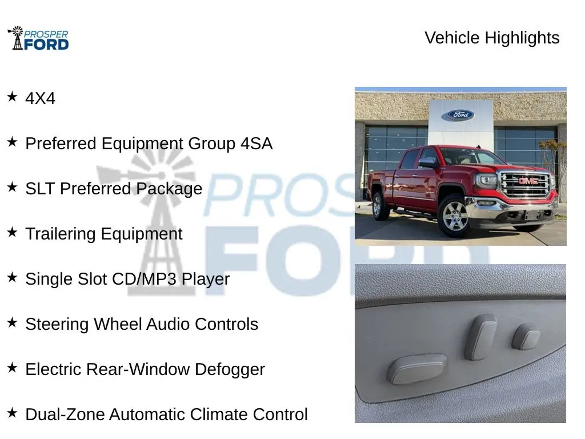 Introducing the 2018 GMC Sierra 1500 SLT - a rugged and refined full-size pickup that's ready to take on any task. With its powerful EcoTec3 5.3L V8 engine, 4-wheel drive capabilities, and impressive towing capacity, this Sierra is the ultimate workhorse. But don't let its capabilities overshadow its premium features and luxurious interior. - 4X4 - SLT PREFERRED PACKAGE - SEATING, HEATED AND VENTILATED PERFORATED LEATHER-APPOINTED FRONT BUCKET - AUDIO SYSTEM, 8 DIAGONAL COLOR TOUCH SCREEN NAVIGATION WITH GMC INFOTAINMENT SYSTEM, AM/FM/SIRIUSXM, HD RADIO - TIRES, P265/65R18 ALL-TERRAIN, WHITE OUTLINED LETTER - TRAILER BRAKE CONTROLLER, INTEGRATED - ENGINE BLOCK HEATER This Sierra SLT is packed with thoughtful amenities that elevate the driving experience. Enjoy the convenience of the wireless charging pad, the warmth of the heated steering wheel, and the comfort of the ventilated front seats. The 8-inch color touchscreen display puts advanced navigation, entertainment, and connectivity at your fingertips. Whether you're hauling heavy payloads or towing your favorite toys, this Sierra SLT is up for the challenge. The integrated trailer brake controller and 4-wheel drive system provide the confidence and control you need, while the powerful engine and transmission deliver the capability you demand. Step inside and you'll be surrounded by premium materials and attention to detail. The leather-appointed seats, brushed metal accents, and soft-touch surfaces create a refined and luxurious cabin. The driver-centric layout puts all the controls within easy reach, making it easy to stay focused on the road ahead. Safety is also a top priority, with features like front and rear park assist, lane departure warning, and a rearview camera to help you navigate with confidence. And with the available OnStar and GMC Connected Services, you'll have peace of mind knowing help is just a button away. If you're in the market for a full-size pickup that blends rugged capability with premium refinement, the 2018 GMC Sierra 1500 SLT is a must-see. Visit our showroom today and experience the power, comfort, and technology that make this truck a true standout in its class.