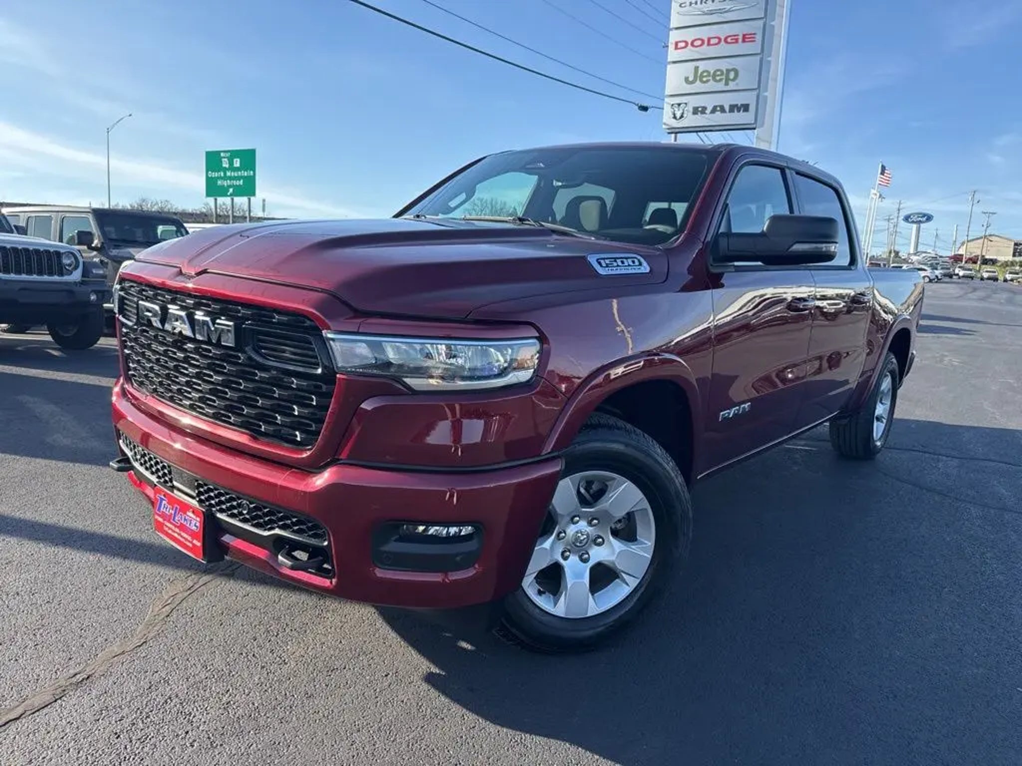 Details > 2026 RAM 1500 4X4 Big Horn 4DR Crew Cab 5.6 FT. SB Pickup For Sale in Branson, MO Private Party Sellers Click here to place your ad now! You auta tell them you saw the ad in AutaBuy when you call or email. 1/41 2/41 3/41 4/41 5/41 6/41 7/41 8/41 9/41 10/41 11/41 12/41 13/41 14/41 15/41 16/41 17/41 18/41 19/41 20/41 21/41 22/41 23/41 24/41 25/41 26/41 27/41 28/41 29/41 30/41 31/41 32/41 33/41 34/41 35/41 36/41 37/41 38/41 39/41 40/41 41/41 View 41 Photos View All Add to My Garage Parked in Your Garage! Tri Lakes Ford Contact Seller: I would like to: Make Offer Check Availability Ask A Question Request More Photos Check Financing Options Send a copy of this message to me Add this listing to my garage Send to Mobile Mileage 735 Exterior Color Delmonico Red Pearlcoat Interior Color Black Doors 4 Engine 3.0L I6 Transmission 8 Speed Auto Stock # TN170997A VIN 1C6SRFFP1TN166936 Estimated Monthly Payment $922 mo Apply Now J.J. Best Banc & Co. 2026 RAM 1500 4X4 Big Horn 4DR Crew Cab 5.6 FT. SB Pickup Description: Delmonico Red Pearlcoat 2026 Ram 1500 Big Horn/Lone Star 4WD 8-Speed Automatic 3.0L I6 Recent Arrival! · Mileage: 735 · Color: Delmonico Red Pearlcoat Price: $52,995. Mileage 735 Exterior Color Delmonico Red Pearlcoat Interior Color Black Doors 4 Engine 3.0L I6 Transmission 8 Speed Auto Stock # TN170997A VIN 1C6SRFFP1TN166936 Estimated Monthly Payment $922 mo Apply Now J.J. Best Banc & Co. Add to My Garage Parked in Your Garage! Message Seller Tri Lakes Ford Contact Seller: I would like to: Make Offer Check Availability Ask A Question Request More Photos Check Financing Options Send a copy of this message to me Add this listing to my garage Offered for sale by Tri Lakes Ford BRANSON, MO Price: $52,995. Offered for sale by Tri Lakes Ford BRANSON, MO [entire inventory] Ask Auta Intelligence The first collector-car AI built directly into a classic car marketplace What's the typical towing capacity in this configuration? What colors did these come in? What size tires does this run from the factory? Tell me about this model How easy are parts to find for this model? What transmission options did these offer? What does this VIN number tell me? What engine options did these come with? How far is this from me? How many 1500s were produced in Red? What factory options were available on this model? What kind of mileage do these get? How many of these were produced? What trim levels were available for this model? Can you show me more pickups/trucks for a similar price? Where is this located? When was this model first introduced? Do you have a similar car to sell? List It Now! Questions about this car? Ask Auta Intelligence for production numbers, available options, etc. · Subscribe to AutaBuy! · Send a Gift Subscription Notice to a Friend