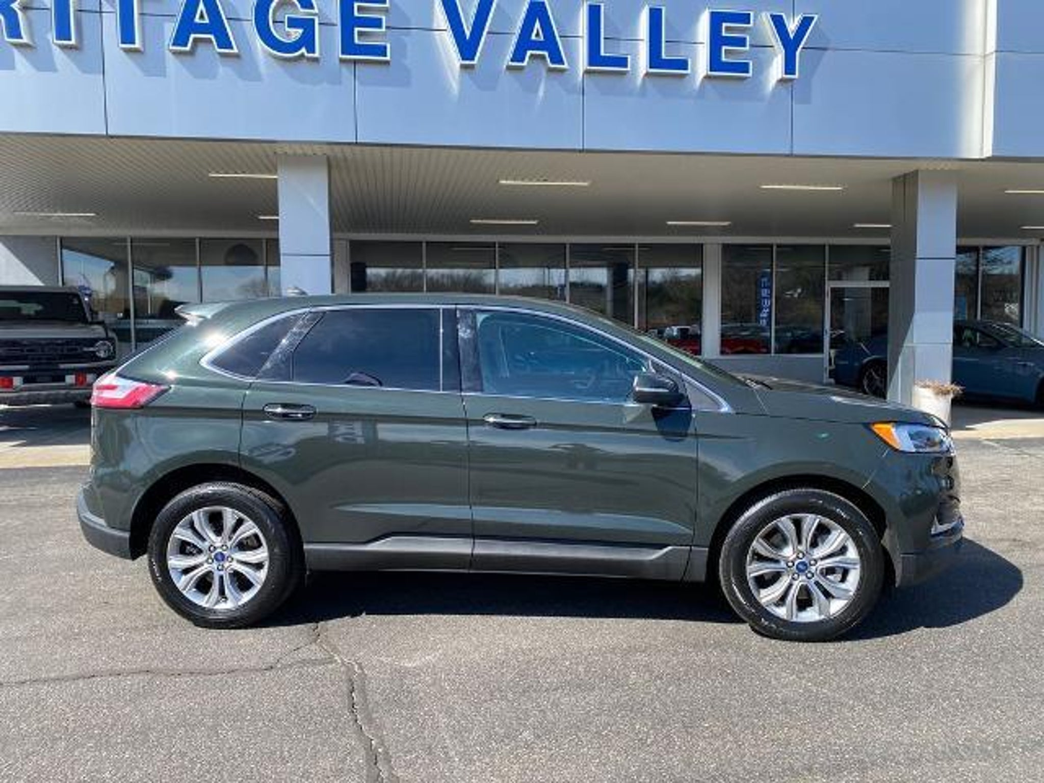 Recent Arrival! AWD. Forged Green Metallic 2023 Ford Edge Titanium AWD 8-Speed Automatic EcoBoost 2.0L I4 GTDi DOHC Turbocharged VCT At Heritage Valley, we have devoted ourselves to helping and serving our customers for four generations. We believe the cars we offer are the highest quality and ideal for your life needs. We understand that you rely on us for accurate information, and it is our pledge to deliver you relevant, correct, and abundant content. Odometer is 20001 miles below market average! 21/28 City/Highway MPG Thank you for considering Heritage Valley Ford! It is a privilege to have earned your faith and trust.
