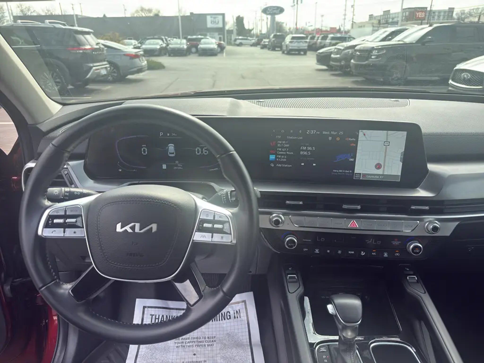 Vehicle Details Ready to elevate your driving experience? This 2024 Kia Telluride S in Louisville, KY is the perfect blend of power, comfort, and advanced safety "” and it's offered at the best price you'll find. With a V6, 3.8L gasoline engine and AWD, this Kia Telluride delivers confident performance in every condition. Low mileage (0 miles) means you're getting a virtually untouched SUV ready for countless adventures. Step inside to luxurious leather seats that provide premium comfort for driver and passengers. Stay connected and entertained with Apple CarPlay, keeping navigation, music, and calls seamlessly integrated into your drive. Cold mornings are no problem "” remote start warms up your cabin before you even step outside. Safety is front and center with Collision Avoidance and Lane Departure Warning to help protect you and your family on busy roads and long trips. The Kia Telluride S balances rugged capability with refined features, offering versatile cargo space and a smooth ride for daily commuting or weekend getaways. This low-mileage 2024 Kia Telluride S is located in Louisville, KY and represents exceptional value with its combination of performance, comfort, and cutting-edge safety technology. If you're searching for a spacious, reliable SUV at the best price, this Kia Telluride checks every box. Schedule a test drive today and experience why this model continues to be a top choice for drivers who demand excellence. Equipment The leather seats in this vehicle are a must for buyers looking for comfort, durability, and style. Bluetooth technology is built into this model, keeping your hands on the steering wheel and your focus on the road. Never get into a cold vehicle again with the remote start feature on this model. Protect this 2024 Kia Telluride from unwanted accidents with a cutting edge backup camera system. The installed navigation system will keep you on the right path. It has a clean CARFAX vehicle history report. The vehicle employs advanced tech for collision avoidance, enhancing safety on the road. The vehicle offers Android Auto for seamless smartphone integration. This unit's Lane Departure Warning keeps you safe by alerting you when you drift from your lane. Good News! This certified CARFAX 1-owner vehicle has only had one owner before you. This 2024 Kia Telluride offers Apple CarPlay for seamless connectivity. This 2024 Kia Telluride has a V6, 3.8L high output engine. Packages S Sunroof Package: Power Sunroof with Sunshade. Dawning Red. Carpet Floor Mats. **Equipment listed is based on original vehicle build and subject to change. Please confirm the accuracy of the included equipment by calling the dealer prior to purchase.**