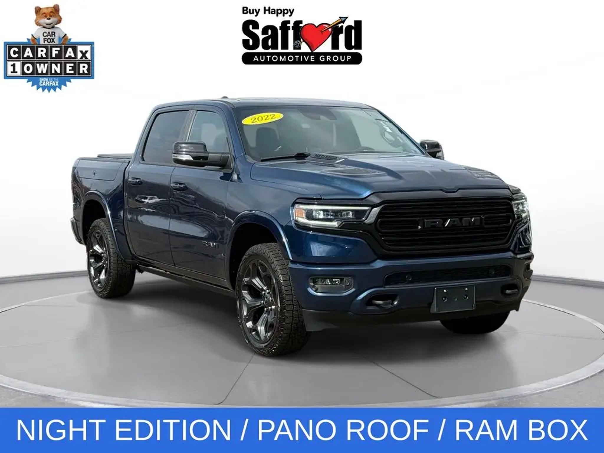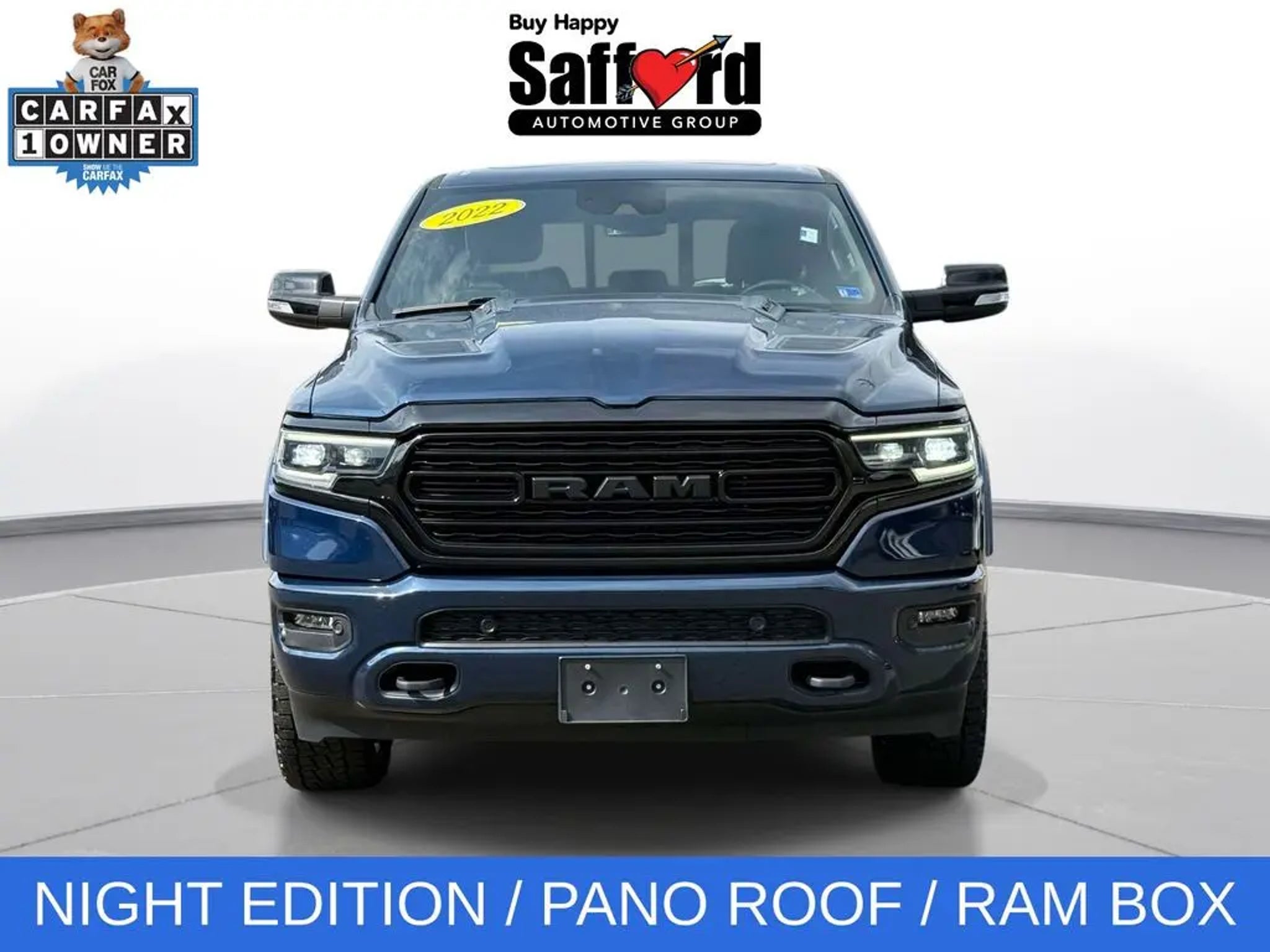 Experience the ultimate in power, style, and technology with this exceptional 2022 Ram 1500 Limited. This impressive full-size pickup is a true standout, blending exceptional capability with uncompromising luxury and advanced features. Boasting an impressive array of premium upgrades, this Ram 1500 Limited comes equipped with: - NIGHT EDITION package, including black exterior accents, 22 black aluminum wheels, and a tri-fold tonneau cover - RAMBOX Cargo Management System for secure and versatile storage - Dual-Pane Panoramic Sunroof for an open, airy cabin experience - Harman Kardon 19-speaker premium sound system for an exceptional audio experience Beneath the hood, this Ram 1500 is powered by the legendary HEMI 5.7L V8 engine, delivering impressive power and performance. Paired with an 8-speed automatic transmission and 4-wheel drive, this truck is ready to tackle any terrain with confidence. Inside, the cabin is a true sanctuary of luxury and technology. Sink into the plush, ventilated leather-trimmed seats and enjoy features like dual-zone automatic climate control, a heated steering wheel, and a 12-inch Uconnect 5 touchscreen display with built-in navigation. The available RamBox Cargo Management System provides secure, lockable storage for all your gear, while the Dual-Pane Panoramic Sunroof floods the cabin with natural light. Safety and convenience are also top priorities, with advanced features like a ParkView Rear Back-Up Camera, Trailer Brake Control, and a suite of active safety technologies to help keep you and your passengers secure on the road. Whether you're hauling heavy loads, towing your boat or camper, or simply enjoying the open road, this 2022 Ram 1500 Limited is the perfect companion. Experience the ultimate in power, style, and technology "“ visit our showroom today and let us put you behind the wheel of this exceptional truck.
