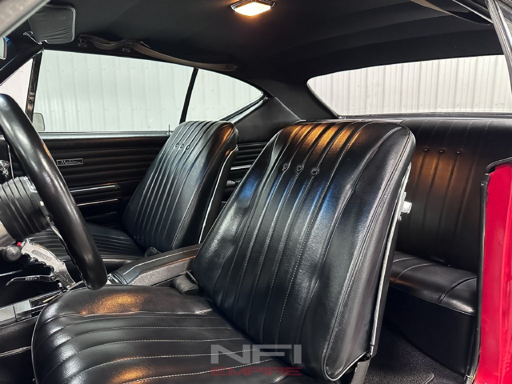 This 1968 Chevrolet Chevelle Malibu is finished in a classic red exterior with black stripes and a black vinyl roof, giving it the look enthusiasts want from a late-'60s A-body. Under the hood is a 454 V8 equipped with MSD ignition, Brodix heads, an Edelbrock intake, a Quick Fuel performance carburetor, and an SS Series Aeromotive fuel pressure regulator. Long-tube headers feed into Magnaflow mufflers for a setup that matches the car's muscle-era character.