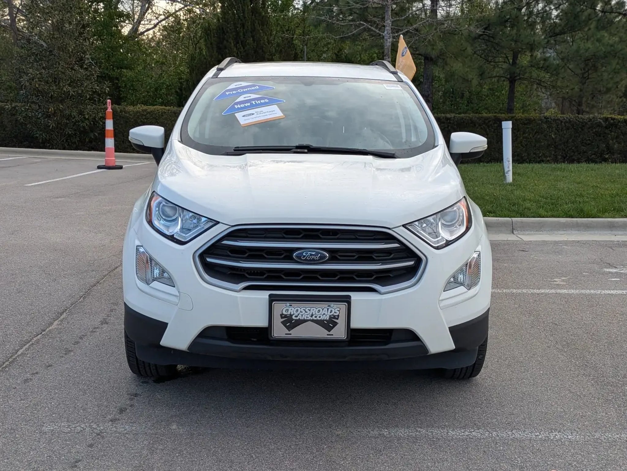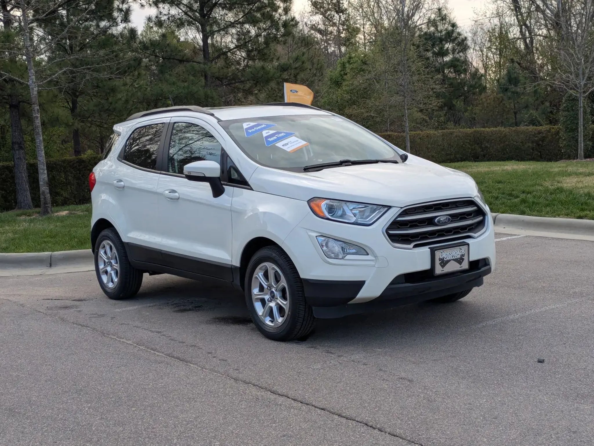 2021 Ford EcoSport SE FWD Ford Blue Advantage Gold CertifiedDiamond White Ebony Black Unique Cloth InteriorNimble, efficient, and surprisingly spacious, this Ford Blue Advantage Gold Certified 2021 Ford EcoSport SE is the perfect companion for urban commutes and weekend getaways alike. Powered by Ford's turbocharged 1.0L EcoBoost engine and a smooth 6-speed automatic transmission, it delivers a punchy driving experience with an impressive 29 MPG on the highway. Finished in crisp Diamond White, this SE trim offers a sophisticated look with LED signature lighting, fog lamps, and 16-inch alloy wheels.The cabin is designed for comfort and connectivity, featuring unique cloth heated front seats and a power moonroof to brighten every journey. Technology is at your fingertips with the SYNC 3 system and an 8-inch touchscreen, which includes seamless smartphone integration and SiriusXM capability. Convenience is built-in with Intelligent Access with push-button start, a Reverse Sensing System, and a Rear View Camera, making parking in tight city spots a breeze.Performance & Exterior HighlightsTurbocharged Efficiency: 1.0L EcoBoost engine paired with a 6-speed automatic for an optimized balance of power and fuel economy.Versatile Design: Features a signature Swing Gate rear door and roof-rack side rails for extra utility.Smart Exterior: Equipped with Auto Halogen Headlamps, active grille shutters, and a Windshield Wiper De-Icer.Power Moonroof: Brings in natural light and fresh air at the touch of a button.City Ready: Compact footprint for easy maneuvering with Easy Fuel capless filler.Interior & Technology FeaturesConnected Cabin: Features the SYNC 3 system with an 8-inch screen and FordPass Connect 4G Wi-Fi hotspot.Comfort First: Includes heated front seats, Electronic Auto Temp Control, and a leather shift knob.Flexibility: 60/40 flip-up/split fold-flat rear seats and a Cargo Management System to accommodate your gear.Modern Convenience: Intelligent Access with Push Button Start and dual smart-charging USB ports.One-Touch Windows: Includes 1-touch up/down power window for the driver.Safety & Driver AssistanceConfident Parking: Equipped with a Rear View Camera and Reverse Sensing System.Stability & Control: Features AdvanceTrac with RSC and Hill Start Assist.Comprehensive Protection: Includes Safety Canopy side air curtains, knee airbags, and a tire pressure monitoring system.Smart Security: MyKey technology and SecuriLock Anti-Theft system for added peace of mind.Safety Ratings: Proudly carries a 4-star overall vehicle safety rating from the NHTSA.Ford Blue Advantage Gold Certified BenefitsComprehensive Limited Warranty: 12-month/12,000-mile (whichever comes first) coverage.Powertrain Limited Warranty: 7-year/100,000-mile (whichever comes first) coverage from the original in-service date.Rigorous 172-Point Inspection: Passed a meticulous examination performed by factory-trained technicians.Roadside Assistance: Complimentary 24/7 Roadside Assistance for 7 years or 100,000 miles.FordPass Rewards: Includes 22,000 Points to use toward your first two maintenance visits.Transparency: Includes a free CARFAX Vehicle History Report.Visit Crossroads Ford of Apex at 1501 North Salem Street, Apex, NC to experience this agile EcoSport SE in person. You can also reach our team at to schedule your private showing and test drive today.