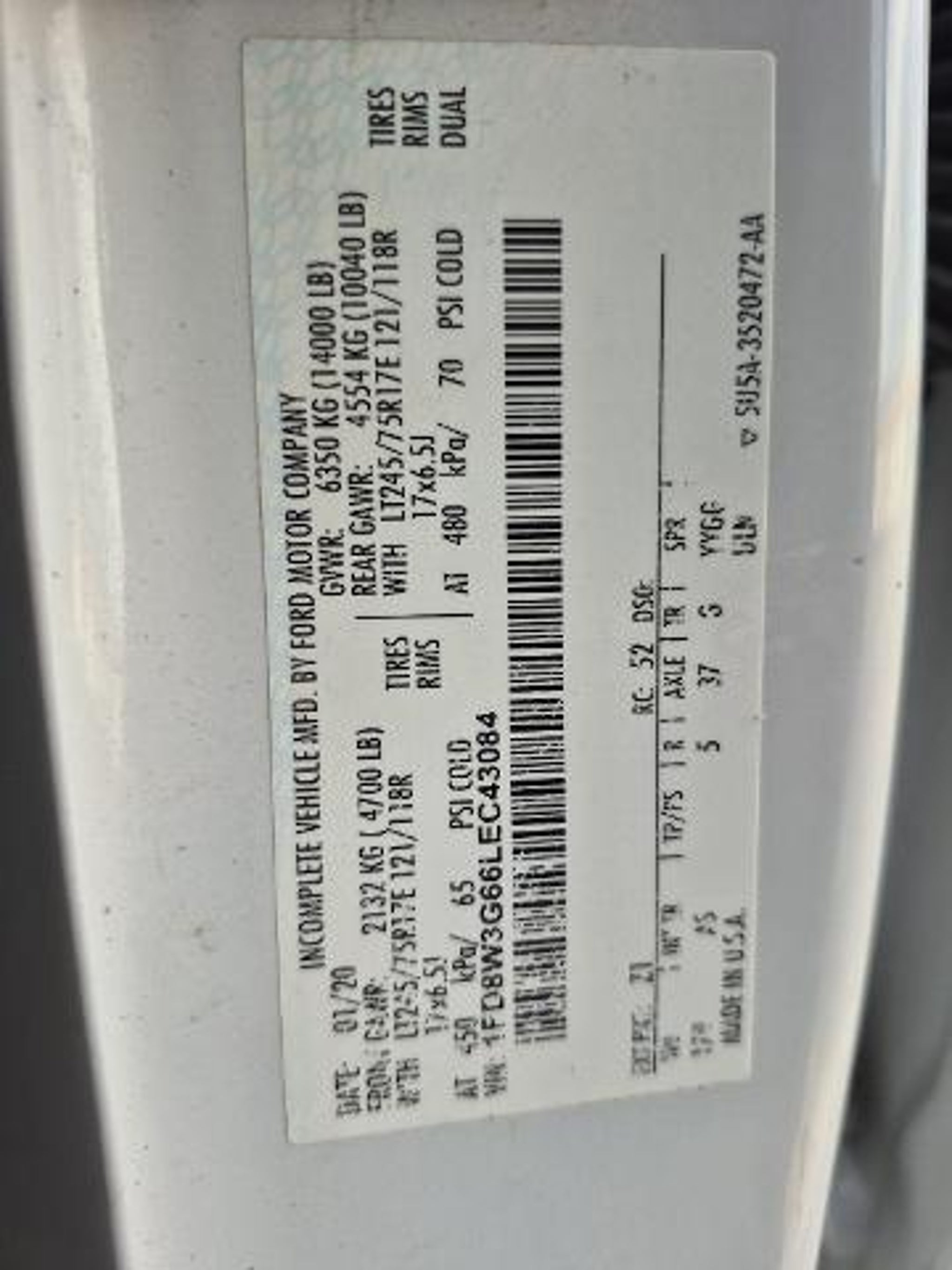 VIN 1FD8W3G66LEC43084