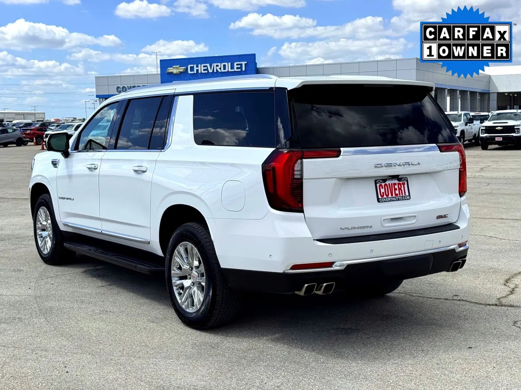 Welcome to Covert Chevy of Hutto, proudly serving Central Texas with quality pre-owned vehicles and exceptional value. Call Covert Ford of Hutto at 512-759-1515 to schedule your VIP appointment or learn more about this vehicle today.This 2025 GMC Yukon XL Denali is a true standout in the full-size SUV segment. With its commanding presence, advanced technology, and uncompromising comfort, this Yukon XL Denali is poised to elevate your driving experience.- 4WD- Blind Spot Monitoring- Clean CARFAX- Cooled Seats- Heated Seats- Leather Interior- Local Trade- Navigation- Non-Smoker- One OwnerThe Yukon XL Denali's powerful EcoTec3 6.2L V8 engine, paired with a smooth-shifting 10-speed automatic transmission, delivers the perfect balance of performance and efficiency. Magnetic Ride Control suspension and an adaptive 4WD system ensure a confident and composed ride, whether navigating city streets or venturing off the beaten path.Step inside the cabin and be enveloped in the epitome of luxury. Perforated leather seating surfaces, heated and ventilated front seats, and a heated steering wheel create an unparalleled level of comfort. The premium Bose audio system and 16.8-inch diagonal GMC Infotainment System with built-in navigation and SiriusXM with 360L provide endless entertainment and connectivity.Safety and convenience are also at the forefront, with features like the Heads-Up Display, Blind Spot Monitoring, and the AutoSense Hands-Free Power Liftgate. The Yukon XL Denali's impressive list of advanced driver-assistance technologies and premium amenities make it the ultimate family hauler.Whether you're embarking on a cross-country adventure or navigating the daily commute, this 2025 GMC Yukon XL Denali is the perfect companion. Experience the uncompromising capability, refined luxury, and exceptional value that this remarkable SUV has to offer.Family owned since 1909, Covert Ford of Hutto is proud to serve drivers across Central Texas including Austin (78701, 78705, 78746, 78753, 78758), Hutto (78634), Pflugerville (78660), Round Rock (78681), and Georgetown (78628, 78626). Experience the trusted service and selection that Central Texas drivers have relied on for generations.