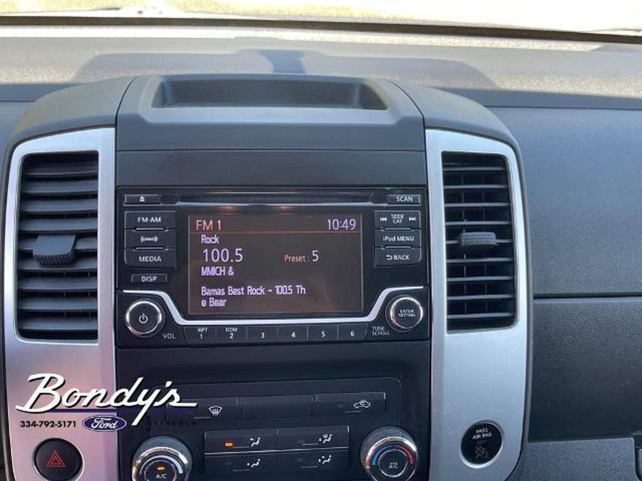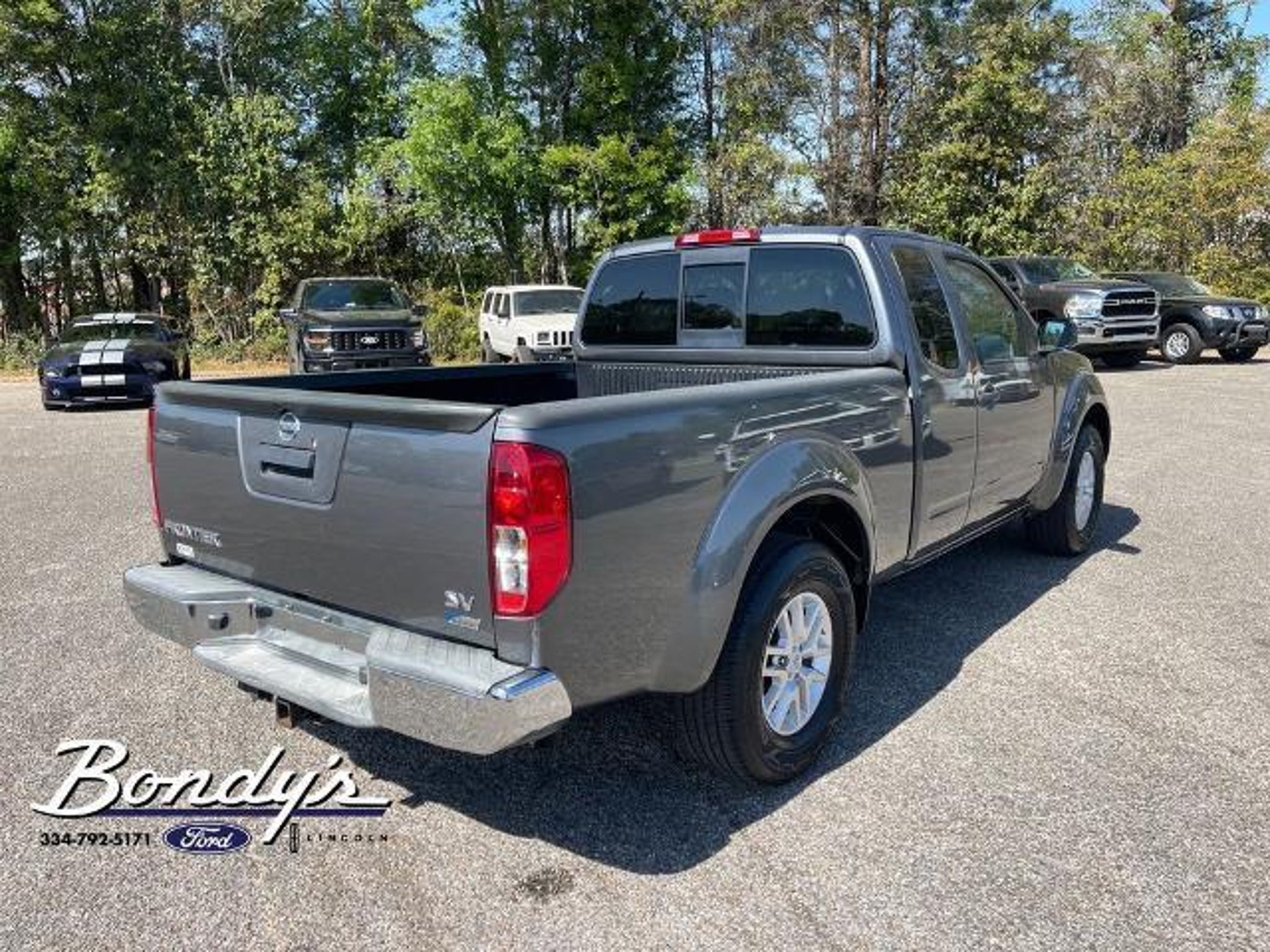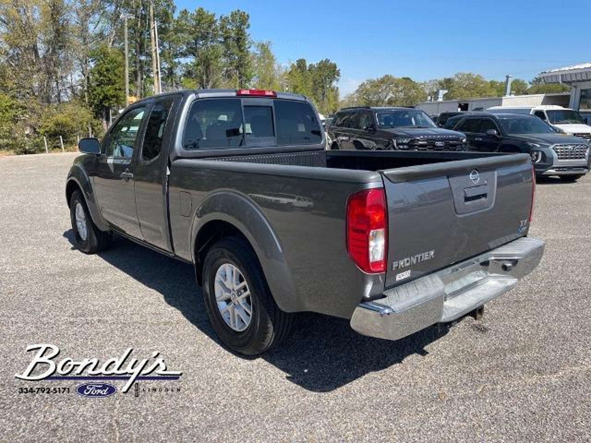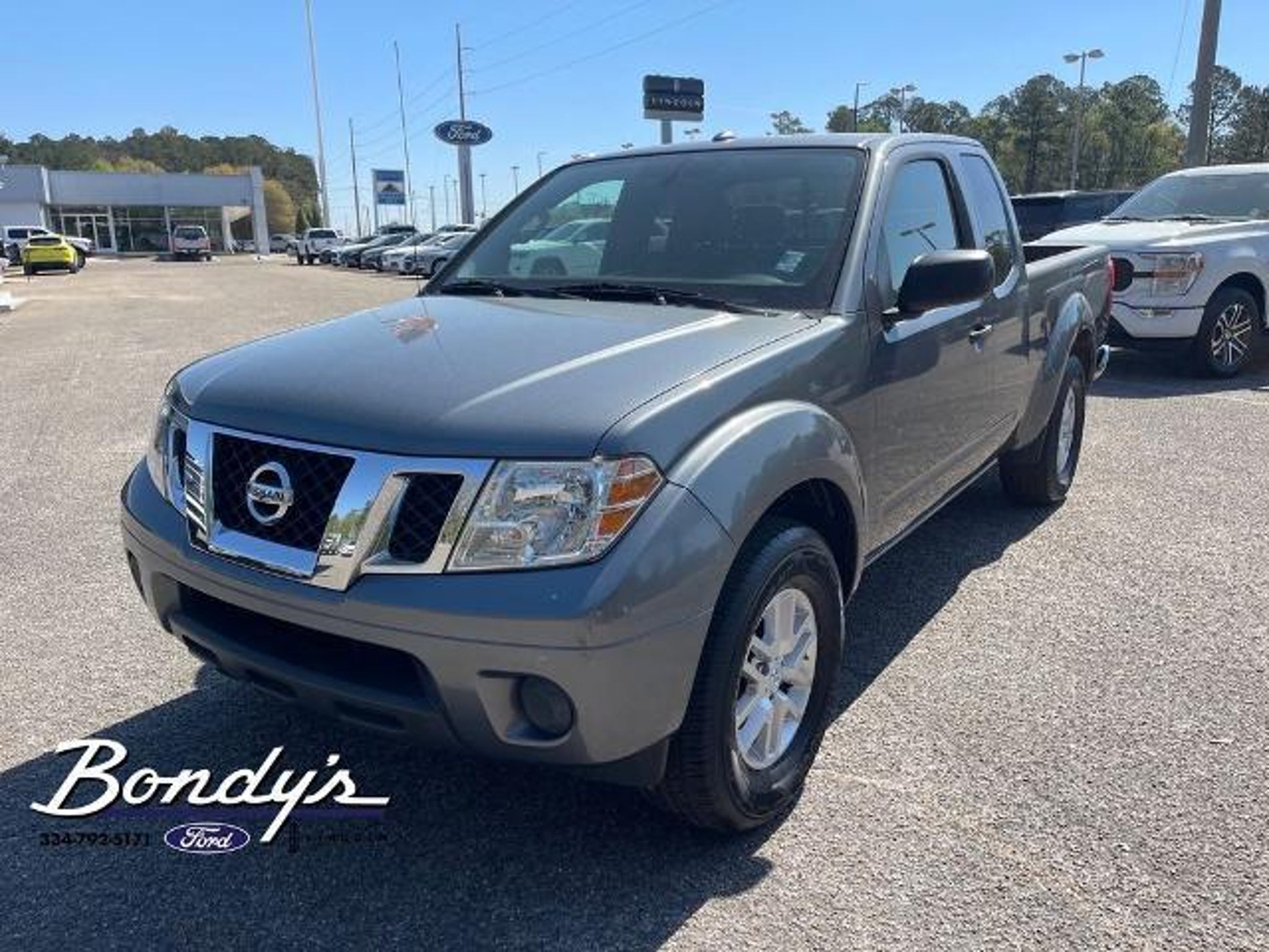 Clean CARFAX. 2017 Nissan Frontier SV 16 Alloy Wheels, 2.937 Axle Ratio, 4 Speakers, 4-Wheel Disc Brakes, ABS brakes, Activation Disclaimer, Air Conditioning, Alloy wheels, AM/FM radio: SiriusXM, AM/FM/CD w/4 Speakers, Anti-whiplash front head restraints, Bed Liner, Bed Liner/Trailer Hitch Package, Bed Rail Caps, Bumpers: body-color, CD player, Cloth Seat Trim, Driver door bin, Driver vanity mirror, Dual front impact airbags, Dual front side impact airbags, Electronic Stability Control, Floor Mats, Front anti-roll bar, Front Bucket Seats, Front Center Armrest, Front reading lights, Front wheel independent suspension, Illuminated entry, Low tire pressure warning, Occupant sensing airbag, Overhead airbag, Overhead console, Panic alarm, Passenger door bin, Passenger vanity mirror, Power door mirrors, Power steering, Power windows, Radio data system, Rear step bumper, Remote keyless entry, Speed control, Speed-sensing steering, Split folding rear seat, Steering wheel mounted audio controls, Tachometer, Tilt steering wheel, Traction control, Trailer Hitch (PIO), Variably intermittent wipers, Voltmeter. Gun Metallic RWD 4.0L V6 DOHC 5-Speed Automatic with Overdrive THIS VEHICLE IS LOCATED AT BONDY'S FORD LINCOLN AT 3615 ROSS CLARK CIRCLE DOTHAN, AL 36303. PLEASE CALL US AT 800-239-5171 TO ASK US ANY QUESTIONS! MON-FRI SALES IS HERE FROM 8:30 TO 7:00 AND SAT 8:30 TO 6:00. WE ARE CLOSED ON SUNDAYS. Call Toll Free 800-239-5171 or 334-792-5171.
