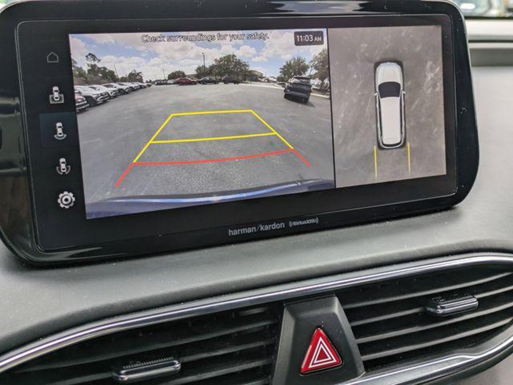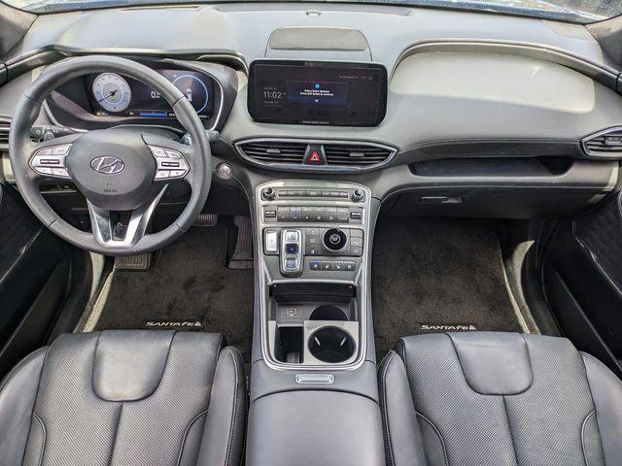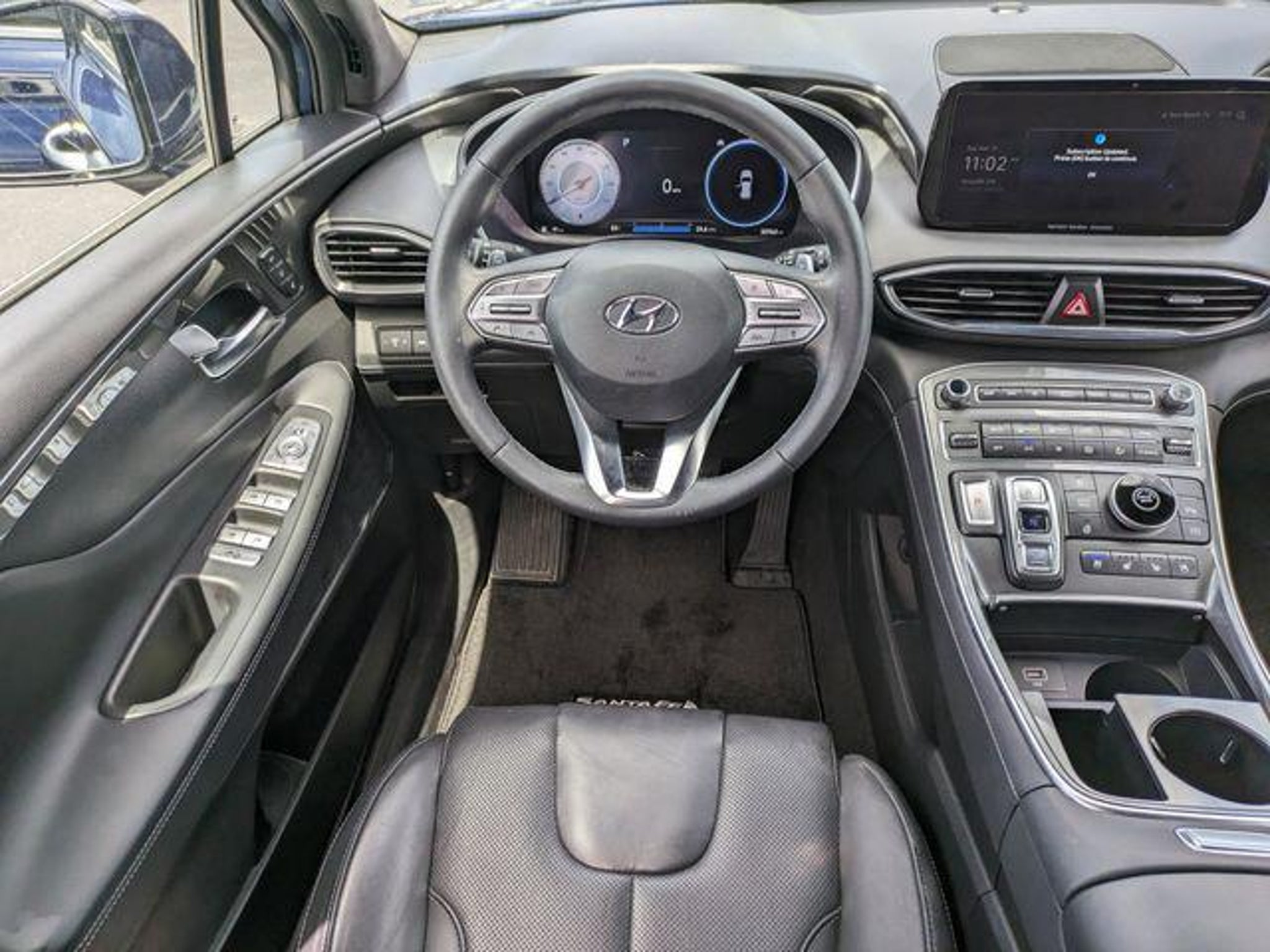 Black Leather. Stormy Blue 2023 Hyundai Santa Fe Calligraphy 2.5L I4 FWD ShiftronicOdometer is 6850 miles below market average!22/28 City/Highway MPGWelcome to Route 60 Hyundai, the Vero Beach dealership that goes the extra mile for you! Our family-owned and -operated Hyundai dealership in Vero Beach, FL, prides itself on delivering exceptional customer service and an unmatched selection of new and used Hyundai vehicles. Our Hyundai sales, service and financing teams assist our guests in a hassle-free environment, and pair them with competitive Hyundai lease specials and Hyundai service coupons to help them save. At Route 60 Hyundai, we strive for excellence, so visit our Hyundai model showroom to buy or service a Hyundai!Equipped with Option Group 01, Black Leather, 12 Speakers, 4-Wheel Disc Brakes, ABS brakes, Air Conditioning, Alloy wheels, AM/FM radio: SiriusXM, Apple CarPlay & Android Auto, Auto High-beam Headlights, Auto-dimming Rear-View mirror, Automatic temperature control, Axle Ratio: 3.316, Brake assist, Bumpers: body-color, Cargo Cover/Screen, Cargo Tray, Carpeted Floor Mats, Delay-off headlights, Driver door bin, Driver vanity mirror, Dual front impact airbags, Dual front side impact airbags, Electronic Stability Control, Emergency communication system, Exterior Parking Camera Rear, First Aid Kit, Four wheel independent suspension, Front anti-roll bar, Front Bucket Seats, Front Center Armrest, Front dual zone A/C, Front reading lights, Fully automatic headlights, Garage door transmitter: HomeLink, harman/kardon® Speakers, Heads-Up Display, Heated & Ventilated Front Bucket Seats, Heated door mirrors, Heated front seats, Heated rear seats, Heated steering wheel, Illuminated entry, Leather steering wheel, Low tire pressure warning, Memory seat, Navigation System, Occupant sensing airbag, Outside temperature display, Overhead airbag, Overhead console, Panic alarm, Passenger door bin, Passenger vanity mirror, Power door mirrors, Power driver seat, Power Liftgate, Power moonroof, Power passenger seat, Power steering, Power windows, Quilted Premium Nappa Leather Seat Trim, Radio: AM/FM Harman Kardon Display Audio, Rain sensing wipers, Rear anti-roll bar, Rear seat center armrest, Rear window defroster, Rear window wiper, Remote keyless entry, Roof Rack Cross Bars (DISC), Security system, Speed control, Speed-sensing steering, Split folding rear seat, Spoiler, Steering wheel mounted audio controls, Tachometer, Telescoping steering wheel, Tilt steering wheel, Traction control, Trip computer, Turn signal indicator mirrors, Variably intermittent wipers, Ventilated front seats, and Wheels: 20 x 8.0J Alloy.