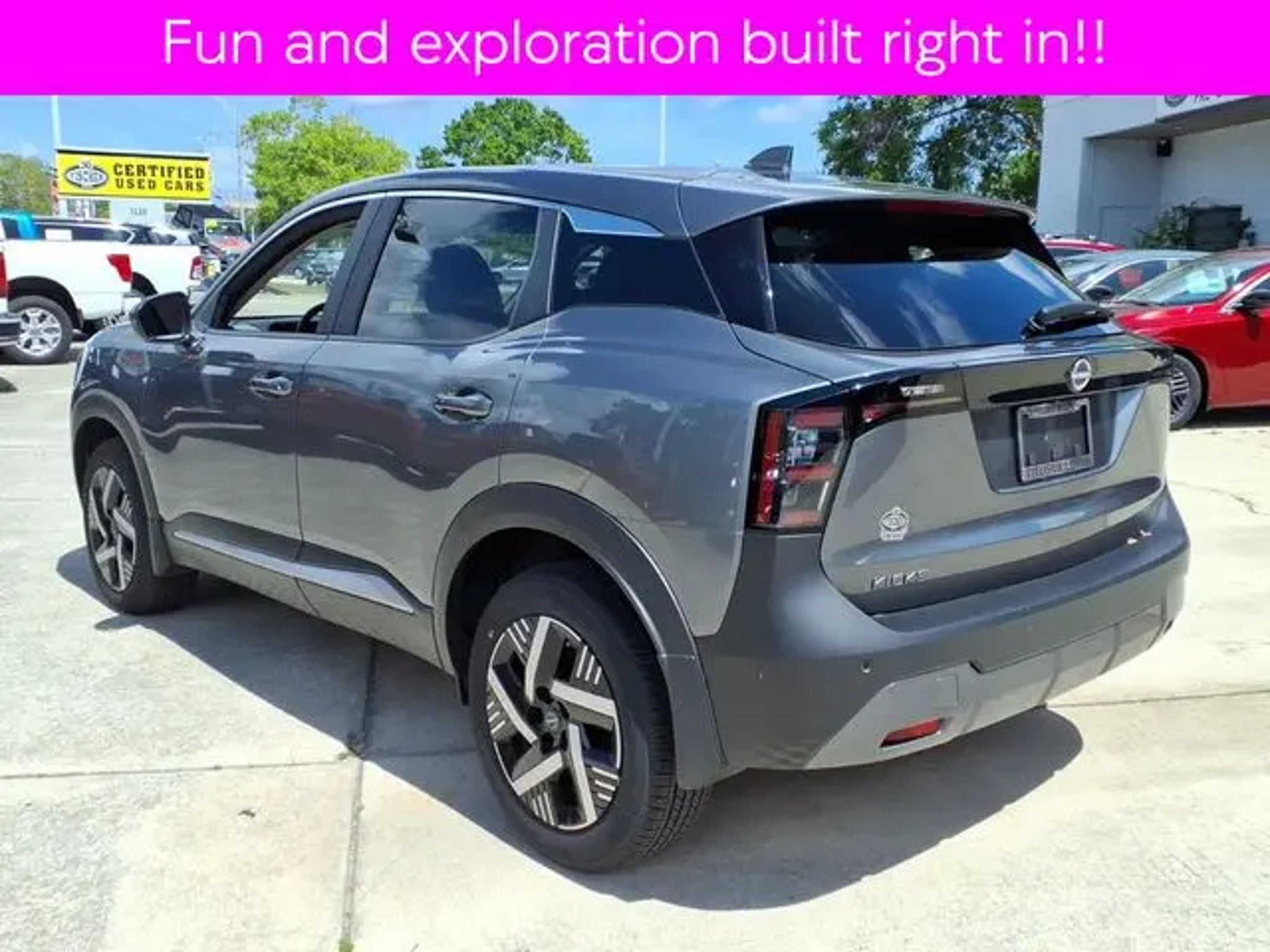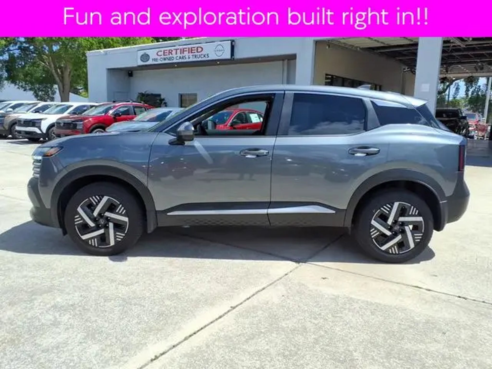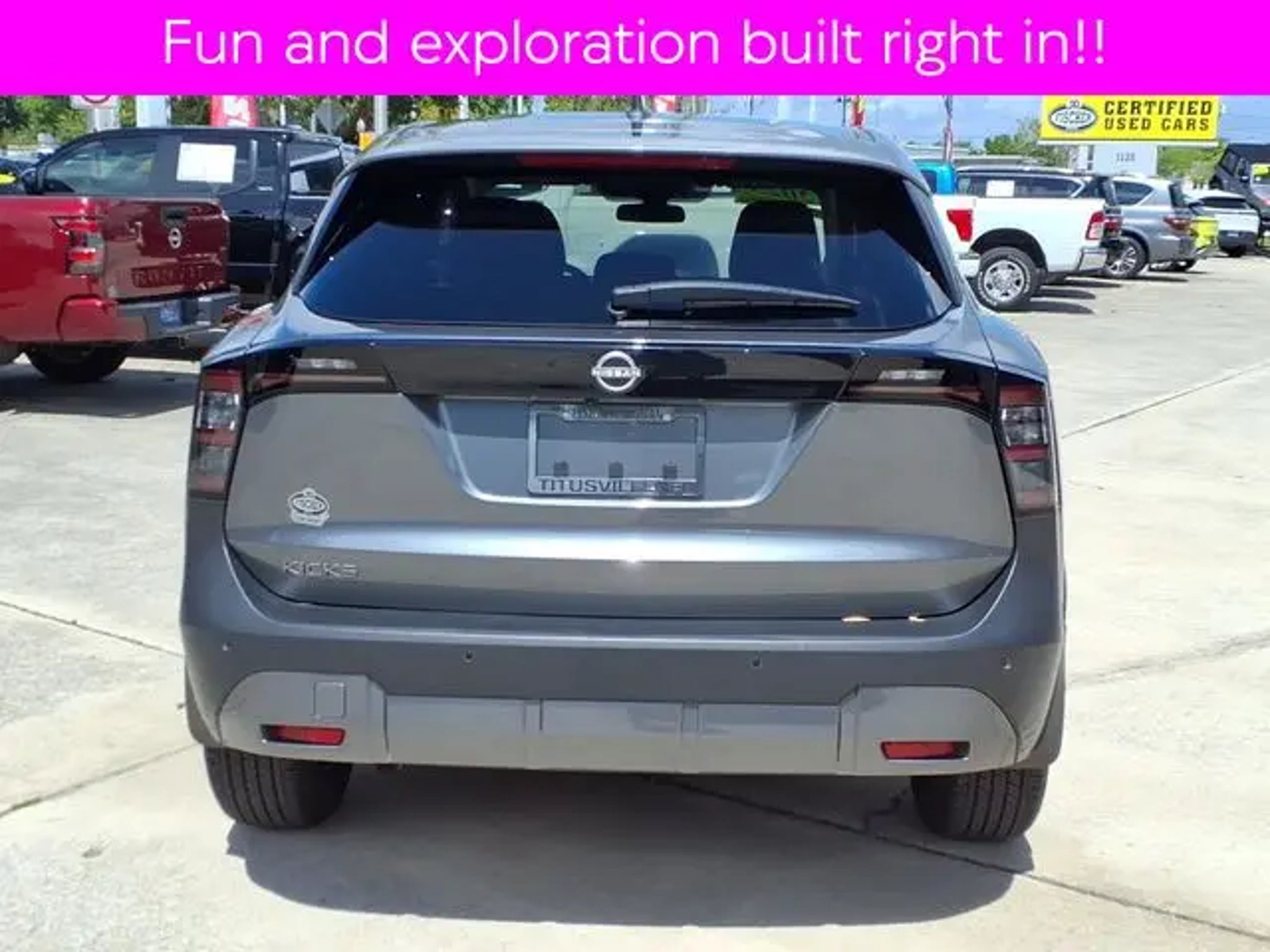 2025 Nissan Kicks SV **ONLY 2140 miles!! Special low apr Nissan Certified financing avail wac-- Low payments!! 4D Sport Utility with sassy new look and fun nible driving confidence. Kicks is fun and exciting. Easy to own and easy to maintain. Pass the gas station and go somewhere fun instead!! ** 2.0L DOHC, CVT with Xtronic, FWD, Gun Metallic, Charcoal Cloth, Rear Parking Sensors, Remote keyless entry, Steering wheel mounted audio controls. Gun Metallic 2.0L DOHC CVT with Xtronic FWD Odometer is 9004 miles below market average! 28/35 City/Highway MPG Nissan Certified Details: * 7 Year/100,000 Mile Limited Warranty, 24/7 Hour Roadside Assistance, Carfax Vehicle History Report, Plus 1 Year Pre-Paid Maintenance Included. Gas Powered Nissan Models Only. * 167 Point Inspection * Vehicle History * Limited Warranty: 84 Month/100,000 Mile (whichever occurs first) * Transferable Warranty * Roadside Assistance * Warranty Deductible: $100 Our Nissan, factory trained, Master technician perform a 167 point inspection and completed routine maintenance. Serving the central Florida area since 1971 and continuing a wonderful history with our new and long time customers, today. We are conveniently located in Titusville, FL just 35 minutes from Orlando Int'l airport, off I-95 exit 220. East 2.7M to US1, turn right on US1- to 1128 S Hopkins Ave Titusville, FL 32780. ** Price does not reflect reconditioning fee $895