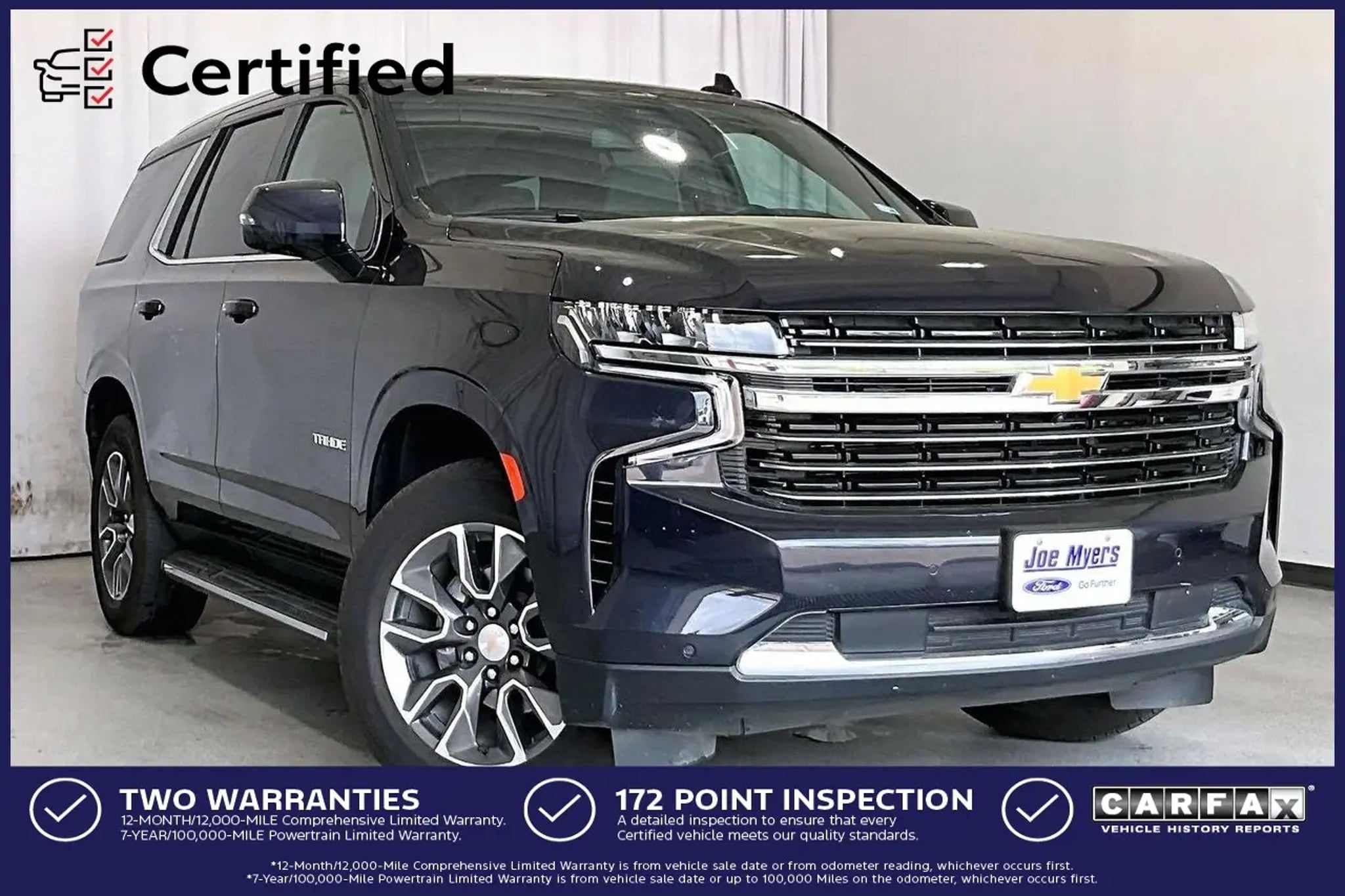 Clean Carfax, Non-Smoker, Local Trade, LEATHER, ONE OWNER, CERTIFIED, Heated/Cooled Seats, ** NAVIGATION / NAVI / GPS **, Rear View Camera, ALUMINUM WHEELS, SECOND ROW BUCKETS, THIRD ROW SEAT, BLUETOOTH, 1st & 2nd Row Color-Keyed Carpeted Floor Mats, 2nd Row Pwr Release 60/40 Split-Folding Bench Seat, 3rd Row 60/40 Power-Folding Split-Bench Seat, Auto-Dimming Inside Rear-View Mirror, Bose 9-Speaker Stereo Audio System Feature, Bright Front & Rear Door Sill Plates, Color-Keyed Carpeting Floor Covering, Driver & Front Outboard Passenger Airbags, Driver Alert Package, Enhanced Driver Information Center, Floor Console w/Storage Area, Hands-Free Rear Power Programmable Liftgate, HD Surround Vision, Heated 2nd Row Outboard Seats, Heated Steering Wheel, Infotainment Display, Lane Change Alert w/Side Blind Zone Alert, LED Daytime Running Lamps, License Plate Front Mounting Package, Luxury Package, Memory Settings, Memory Settings for Driver, Navigation System, Outside Heated Power-Adjustable Mirrors, Power Tilt & Telescopic Steering Column, Preferred Equipment Group 1LT, Rear Cross Traffic Alert, Rear Pedestrian Alert, Remote Start, SiriusXM Radio w/360L, Universal Home Remote, Wireless Charging, Wrapped Steering Wheel. CARFAX One-Owner. Certified. Certification Program Details: MPP CPO Clean CARFAX. Odometer is 34362 miles below market average! Recent Arrival! Dark Ash Metallic 2023 Chevrolet Tahoe LT RWD 10-Speed Automatic with Overdrive EcoTec3 5.3L V8