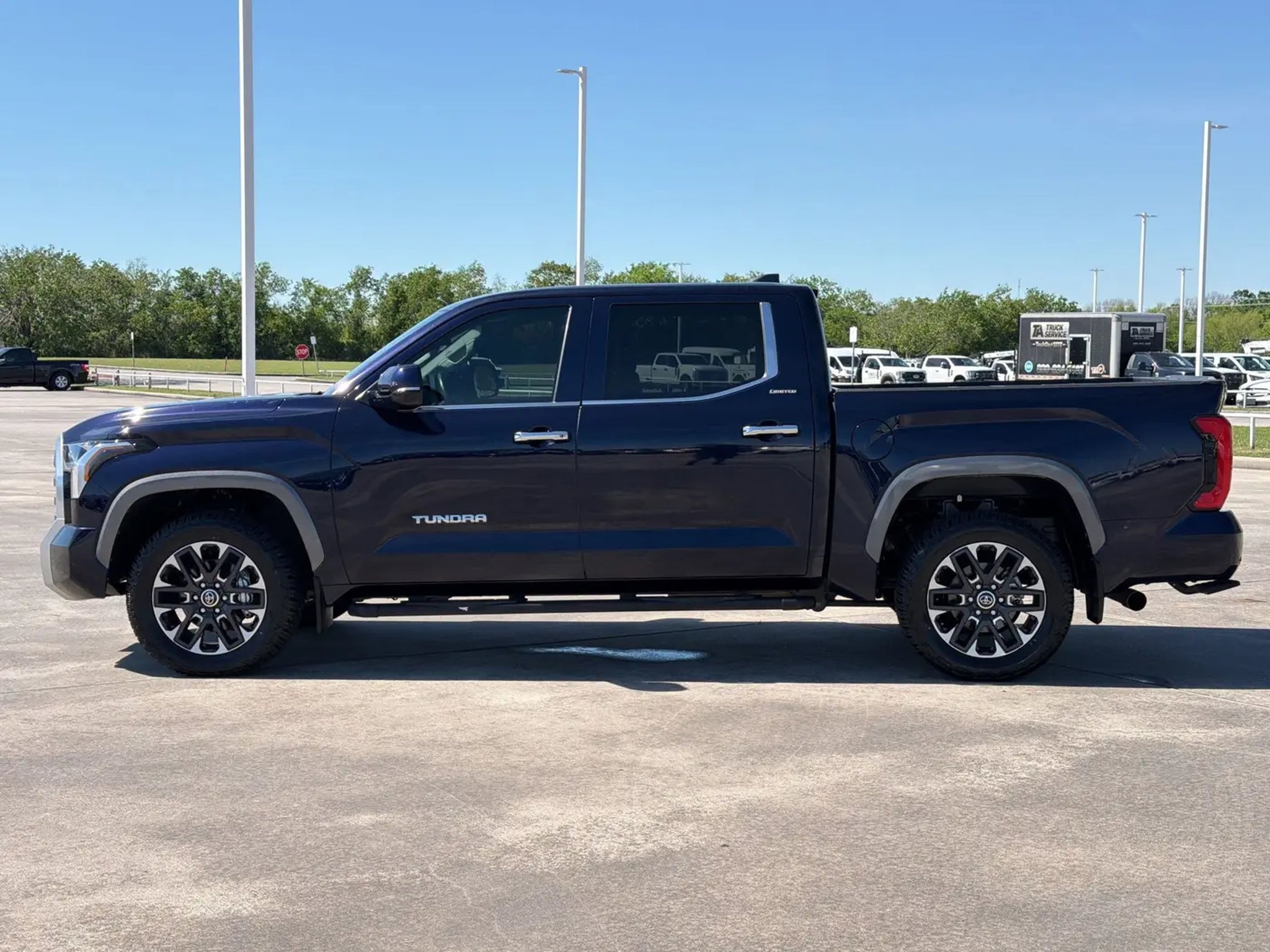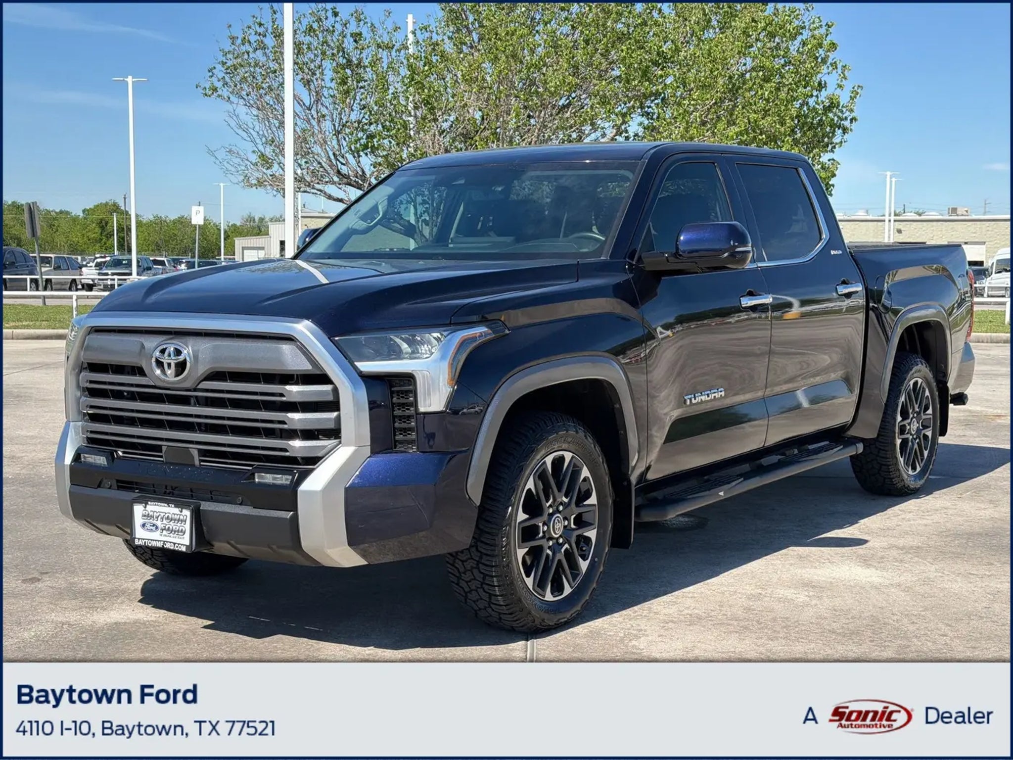 Scores 22 Highway MPG and 17 City MPG! This Toyota Tundra 4WD boasts a Twin Turbo Regular Unleaded V-6 3.4 L/210 engine powering this Automatic transmission. Wheels: 20 Alloy, Wheels w/Machined w/Painted Accents Accents, Vehicle Stability Control (VSC) Electronic Stability Control (ESC).*This Toyota Tundra 4WD Comes Equipped with These Options *Turn-By-Turn Navigation Directions, Trip Computer, Transmission: 10-Speed Electronic Controlled Auto -inc: intelligence (ECT-i), sequential shift mode, uphill/downhill shift logic and TOW/HAUL driving modes, Transmission w/Driver Selectable Mode and Oil Cooler, Trailer Wiring Harness, Tires: 265/60R20, Tire Pressure Monitor System (TPMS) Low Tire Pressure Warning, Tailgate Rear Cargo Access, Streaming Audio, Steel Spare Wheel.