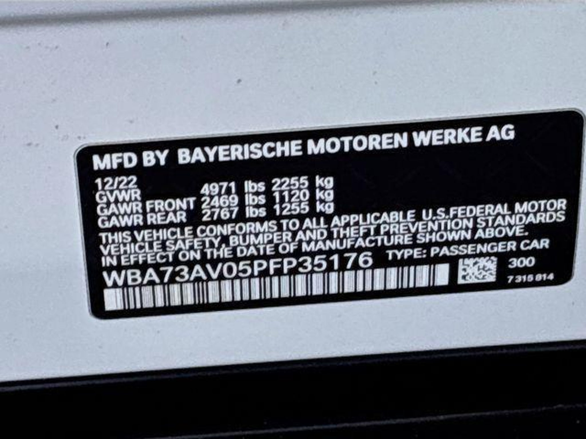 VIN WBA73AV05PFP35176