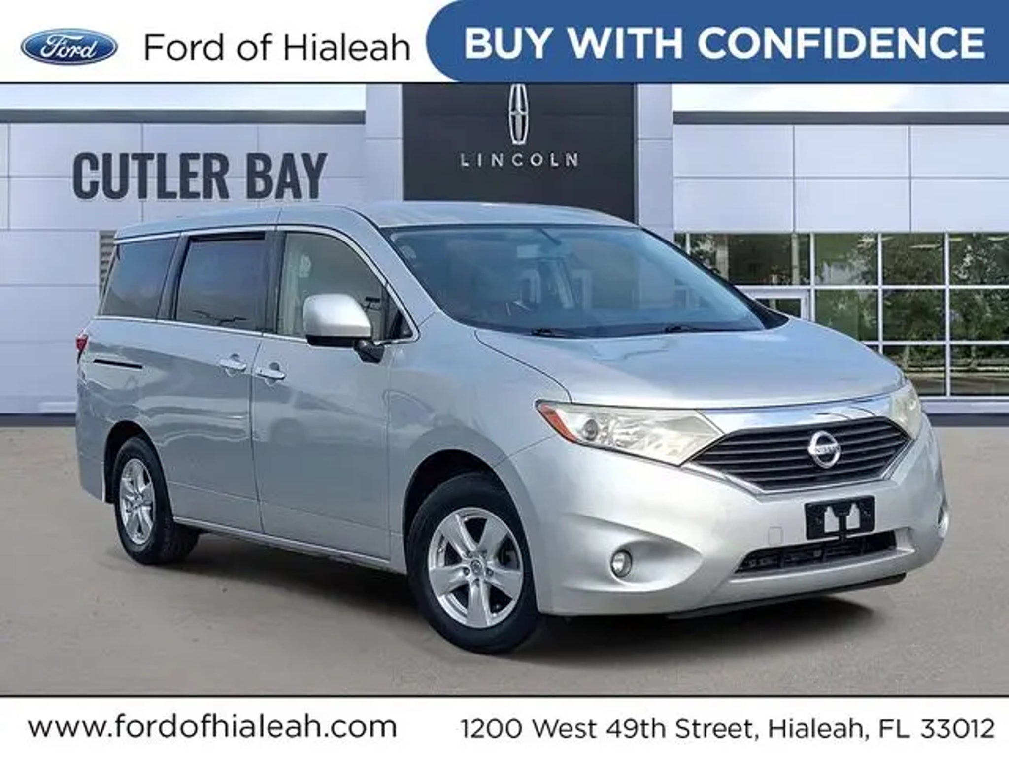 Rear Backup Camera, Bluetooth, Carfax Certified, MANAGER'S SPECIAL!, MUST SEE!, WON'T LAST!, Local Trade, NONSmoker, 3rd Row Seat/ 7 or 8 Seat Option, All Routine Maintenance Up to Date!, Extended Warranty Available!, AMAZING MPG!, Service Records Available, Multifunction Steering Wheel, Keyless Go / Push Button Start. 2015 Nissan Quest 3.5 SV Brilliant Silver 3.5L 6-Cylinder DOHC FWD 20/27 City/Highway MPG ** Let Ford of Hialeah be your #1 choice for your next Pre-owned vehicle. At Ford of Hialeah we take pride in everything we do and strive to not only to be the best Florida dealership but to be the best in the nation. CARFAX-Certified, Trades welcomed, Financing Available. All Pre-owned vehicles are offered with 162-point inspection, and CARFAX vehicle report. Before you sell your trade let one of our Sales consultants offer you the most for your car without the hassle. And whether you are looking for a Lincoln, Honda, Mercedes-Benz, Toyota, Ford, Hyundai, Lexus or BMW, we will have what you want and if we don't, we will find it for you. Call us today! Call or see dealer for details. Valid only to internet customers who provide printed offer. Not valid in conjunction with any other offer. Price is subject to change without notice.**