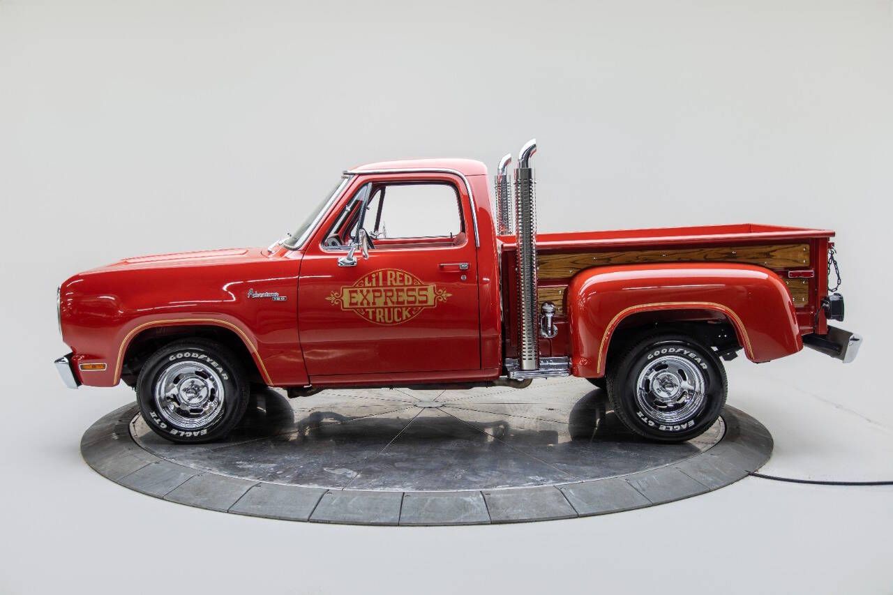 Dodge released the Lil' Red Express Truck In 1978 it was one of the most unique Dodge trucks that had ever been produced. The Lil' Red Express was not only a real looker but these trucks were also real performers also. In 1978 The Dodge Lil' Red Express was the fastest American made vehicle from 0 to 100 MPH as tested by Car and Driver magazine. Quite possibly the first pickup truck engineered for speed! Because of a loophole in the emissions regulations the 1978 Dodge Lil' Red Express Truck's did not have catalytic converters, what the Lil' Red Express did have was a special High Performance 360 C.I. 4-barrel small block engine code (EH1) which was a modified version of the 360 police engine (E58) producing 225 net horsepower @ 3800 RPM. The package also included Hemi style mufflers with a crossover pipe breathing through 2 chrome stacks located behind the cab, a special 727 transmission and 3.55:1 rear gearing. This particular 1978 Dodge Lil' Red Express Truck spent the first 22 years of its life in a climate-controlled storage at Sutton, West Virginia's Elkview Dodge. Circa 2000 the trucks first registered owner, a Pittsburg native who continued the theme of climate control storage, enjoyed it sparingly for roughly 16 years and it then sold to an Iowa collector car Mopar enthusiast who also drove it sparingly in his 75-car collection. He passed away and we acquired it. 15 inch raised white letter tires on 7-inch Chrome wheels up front and 8-inch chrome wheels on the rear and there was no spare included. All 1978 Dodge Lil' Red Express Trucks were automatics, the interiors were available with a standard bench seat in red or black, which we have the red cloth bench. 1978 and some early 1979 Dodge Lil' Red Express Truck's used the tuff steering wheel. The Dodge Lil' Red Express Truck was a hit with the public; rare vehicle with only 2,188 produced in 1978. Li'l Red Truck Pkg. (YH6) Equipment Information: 1978 Code Description Bright front bumper MD2 Chrome bumper MD2 Chrome bumper Bright rear bumper MD3 Chrome bumper MD3 Chrome bumper Exterior paint color PY3442 Bright Canyon Red PY3450 Medium Canyon Red G.V.W. YW4 6100 pounds YW4 6050 pounds 360 cubic inch 4BBL V8 EH1 High Performance EH1 High Performance Automatic transmission (required) FA3 A-727 Loadflight FA0 A-727 Loadflight Oil Gauge LB2 Electric Analog LB2 Electric Analog Rear Axle AV2 3.55:1 AV2 3.55:1 Steering wheel LF4 Tuff Wheel LF6 Four Spoke Western Chrome five-slot disc road wheels RA3 RA6 Front 15x7 Rear 15x8 RA6 (5) 15x8 Raised white outline letter radial tires WMG F WMH R Front GR60x15 Rear LR60x15 Also included as standard equipment on the Lil Red Truck. Dual exhaust with vertical stack-pipes, chrome exhaust tips and stainless heat shields. Chrome plated valve covers, Chrome-plated air-cleaner cover, Chrome-plated side bed steps, Utiline body side and tailgate oak body trim panels with chrome-headed prop nuts, Gold 3M pinstriping tape decals on tailgate and doors. Why buy from us? We are one of the oldest and largest Midwest dealers who specializes in collector cars, modern muscle cars and imports. We normally have 40-90 collector cars in stock. All of our cars are handpicked purchases, not consignments, that have been evaluated for quality, value and checked over in our shop to assure drivability. These cars are available to look over, test drive and evaluate at our location, by appointment only, due to the extensive amount of travel it takes to find these vehicles. People frequently buy collector cars at auctions and have no idea what they are getting, often regretting the purchase due to issues of condition, drivability, paperwork, etc. We have 45+ years' experience in the automotive industry and can guide our customers through the complete purchase experience including shipping if needed. We will happily consider all types of trades including multiple trades of different types if necessary. We also will p
