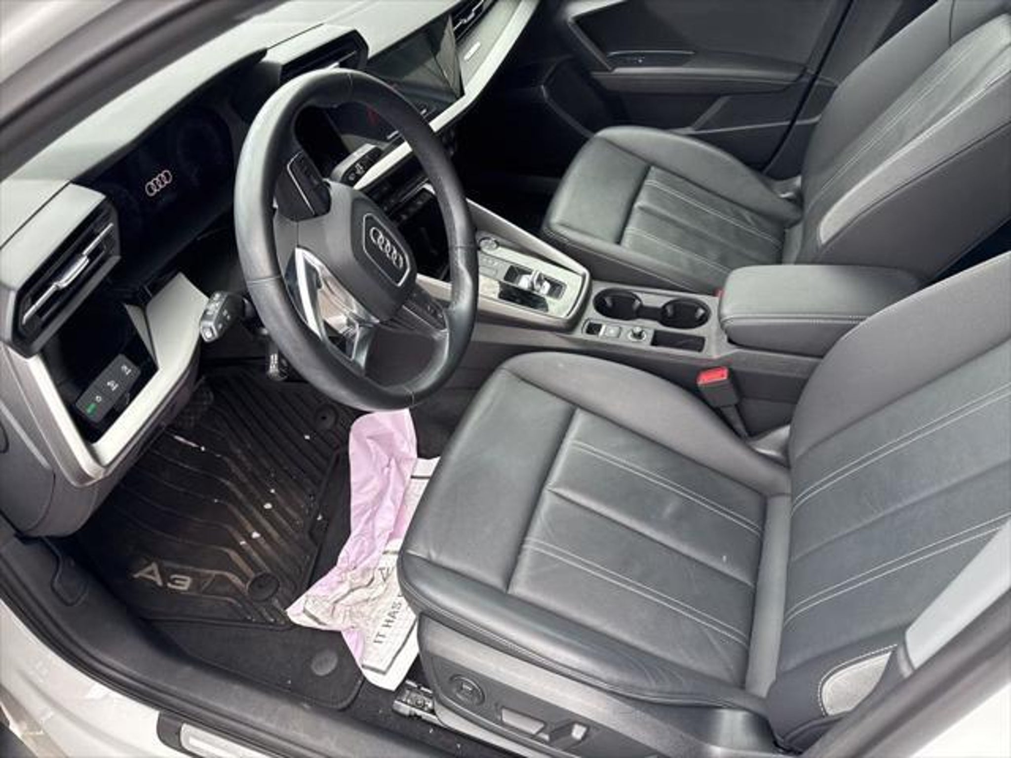 CARFAX One-Owner. Clean CARFAX. Odometer is 14419 miles below market average! White 2023 Audi A3 40 Premium Plus FrontTrak 7-Speed Automatic S tronic 2.0L 4-Cylinder TFSI Black/Rock Gray Stitching Leather, ABS brakes, Alloy wheels, Electronic Stability Control, Emergency communication system, Front dual zone A/C, Heated door mirrors, Heated Front Bucket Seats, Heated front seats, Illuminated entry, Low tire pressure warning, Power moonroof, Remote keyless entry, Traction control. 28/38 City/Highway MPG