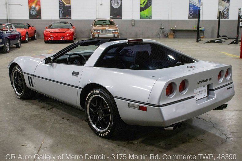 GR Auto Gallery is pleased to present this well-cared-for 1986 Chevrolet Corvette Z51 for your consideration. Finished in a sleek Silver exterior over a clean Gray interior, this Corvette is powered by a Tune Port Injection 5.7L V8 paired with a desirable 4+3 4-speed manual transmission with overdrive. Showing just 53,165 miles, this garage-kept example remains a strong running and driving vehicle. It features a Monza aftermarket exhaust system, digital dash display with all gauges functioning as they should, removable hard top, powered driver seat, power windows, power mirrors, Bose speakers, stow-away compartments, and signature powered flip-up headlights. Additional highlights include the Z51 performance handling package, 5-link suspension, performance axle ratio, electric engine cooling, electric cruise control, and the original window sticker and build sheet. Drive this one out of our showroom or have us assist with shipping it to you anywhere in the United States! Don't hesitate to call us with any questions or for more information.