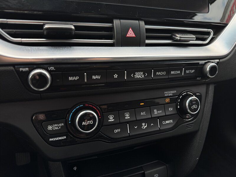 "*Vehicle subject to prior sale. We offer a ""First-Come, First-Served policy"" in order to be fair to all Customers. Price excludes government fees and taxes, or any optional accessories and custom upgrades installed by dealer. Applicable transfer fees and any shipping charges are due in advance of vehicle delivery and are separate from sales transactions. We make every effort to provide accurate and useful information, technical errors may appear from time to time, please call ahead and verify any details that are critical to your purchasing decision. We take pride in our one of a kind car buying experience, come see us today. -- INSTALLED FEATURES: Air filtration, Front air conditioning: automatic climate control, Front air conditioning zones: single, Humidity/dewpoint sensors, Rear vents: second row, Airbag deactivation: occupant sensing passenger, Front airbags: dual, Knee airbags: driver, Side airbags: front, Side curtain airbags: front / rear, Antenna type: diversity / mast, Auxiliary audio input: Bluetooth / iPod/iPhone / jack / USB, Digital sound processing, Internet radio app: Pandora, Premium brand: harman/kardon, Radio: AM/FM / HD radio / touch screen display / voice operated, Radio data system, Satellite radio: SiriusXM, Speed sensitive volume control, Subwoofer: 1, Surround sound: 5.1, Total speakers: 7, Watts: 315, ABS: 4-wheel, Braking assist, Electronic brakeforce distribution, Electronic parking brake: auto off, Front brake type: ventilated disc, Power brakes, Rear brake type: disc, Regenerative braking system, Armrests: rear center with cupholders / rear folding, Cargo area floor mat: rubber/vinyl, Door sill trim: scuff plate, Floor material: carpet, Interior accents: chrome, Steering wheel trim: leather, Adaptive cruise control, Adaptive stop and go cruise control: semi-automatic, Assist handle: passenger side / rear, Autonomous lane guidance: lane centering, Cargo area light, Center console: front console with armrest and storage, Courtesy lights: door, Cupholders: front / rear, Multi-function remote: panic alarm / proximity entry system / trunk release, One-touch windows: 2, Overhead console: front, Power outlet(s): 12V front / USB front, Power steering: variable/speed-proportional, Power windows: lockout button, Push-button start, Reading lights: front / rear, Rearview mirror: manual day/night, Remote engine start, Steering wheel: tilt and telescopic, Steering wheel mounted controls: audio / cruise control / paddle shifter / phone / voice control, Storage: accessory hook / cargo tie-down anchors and hooks / door pockets / front seatback / sunglasses holder, Vanity mirrors: dual illuminating, Wireless charging station: front, Body side moldings: black, Door handle color: body-color, Fender lip moldings: black, Front bumper color: body-color, Grille color: accent surround / black, Mirror color: body-color, Rear bumper color: body-color, Rear spoiler: roofline, Rear spoiler color: black, Rear trunk/liftgate: liftgate, Rocker panel color: black, Window trim: chrome, Connected in-car apps: Google POIs / Google search, Infotainment: Kia Connect, Infotainment screen size: 10.25 in., Smartphone integration: Android Auto / Apple CarPlay, Clock, Compass, Digital odometer, External temperature display, Fuel economy display: MPG / range, Gauge: tachometer, Instrument cluster screen size: 7 in., Multi-function display, Trip odometer, Warnings and reminders: maintenance due, Daytime running lights: LED, Exterior entry lights: approach lamps, Front fog lights, Headlights: auto delay off / auto high beam dimmer / auto on/off / halogen, Side mirror adjustments: power / power folding, Side mirrors: heated / integrated turn signals, Drive mode selector, Electric charge cord: 120 volt, Electric motor battery type: lithium polymer, Electric motor charger: DC fast charging, Electric motor charger connector: SAE Combo CCS, Electric motor charging time (120V): 59 hours, Electric motor miles per charge: 239, EV battery capacity: 64 kWh, EV on-board charger rating: 7.2 kW, Roof rails: silver, Automatic emergency braking: front / front pedestrian / intersection/junction turn, Blind spot safety: sensor/alert, Camera system: rearview, Check rear seat reminder, Child safety door locks, Child seat anchors: LATCH system, Cross traffic alert: rear, Crumple zones: front / rear, Driver attention alert system, Impact sensor: door unlock, Lane deviation sensors, Lane keeping assist, Pedestrian safety sound generation, Pre-collision warning system: audible warning / intersection/junction turn / pedestrian detection / visual warning, Rearview monitor: in dash, Traffic sign recognition: adaptive speed limiting, Emergency locking retractors: front / rear, Front seatbelts: 3-point, Rear seatbelts: 3-point, Seatbelt force limiters: front, Seatbelt pretensioners: front, Seatbelt warning sensor: front, Driver seat: heated, Driver seat power adjustments: 10 / height / lumbar / reclining, Front headrests: 2 / adjustable, Front seat type: bucket, Passenger seat: heated, Passenger seat manual adjustments: 4 / height / reclining, Rear headrests: 3 / adjustable, Rear seat folding: split, Rear seat type: 60-40 split bench, Upholstery: cloth, Upholstery accents: leatherette, Anti-theft system: alarm / vehicle immobilizer, Power door locks: auto-locking, Hill holder control, Stability control, Traction control, Front shock type: gas, Front spring type: coil, Front stabilizer bar, Front struts: MacPherson, Front suspension classification: independent, Front suspension type: lower control arms, Rear shock type: twin-tube gas, Rear spring type: coil, Rear stabilizer bar, Rear suspension classification: independent, Rear suspension type: multi-link, Driver assistance app: roadside assistance, Electronic messaging assistance: voice operated / with read function, Hands-free phone call integration: voice operated, Navigation data: real time traffic, Navigation system: touch screen display / voice operated, Smart device app c
