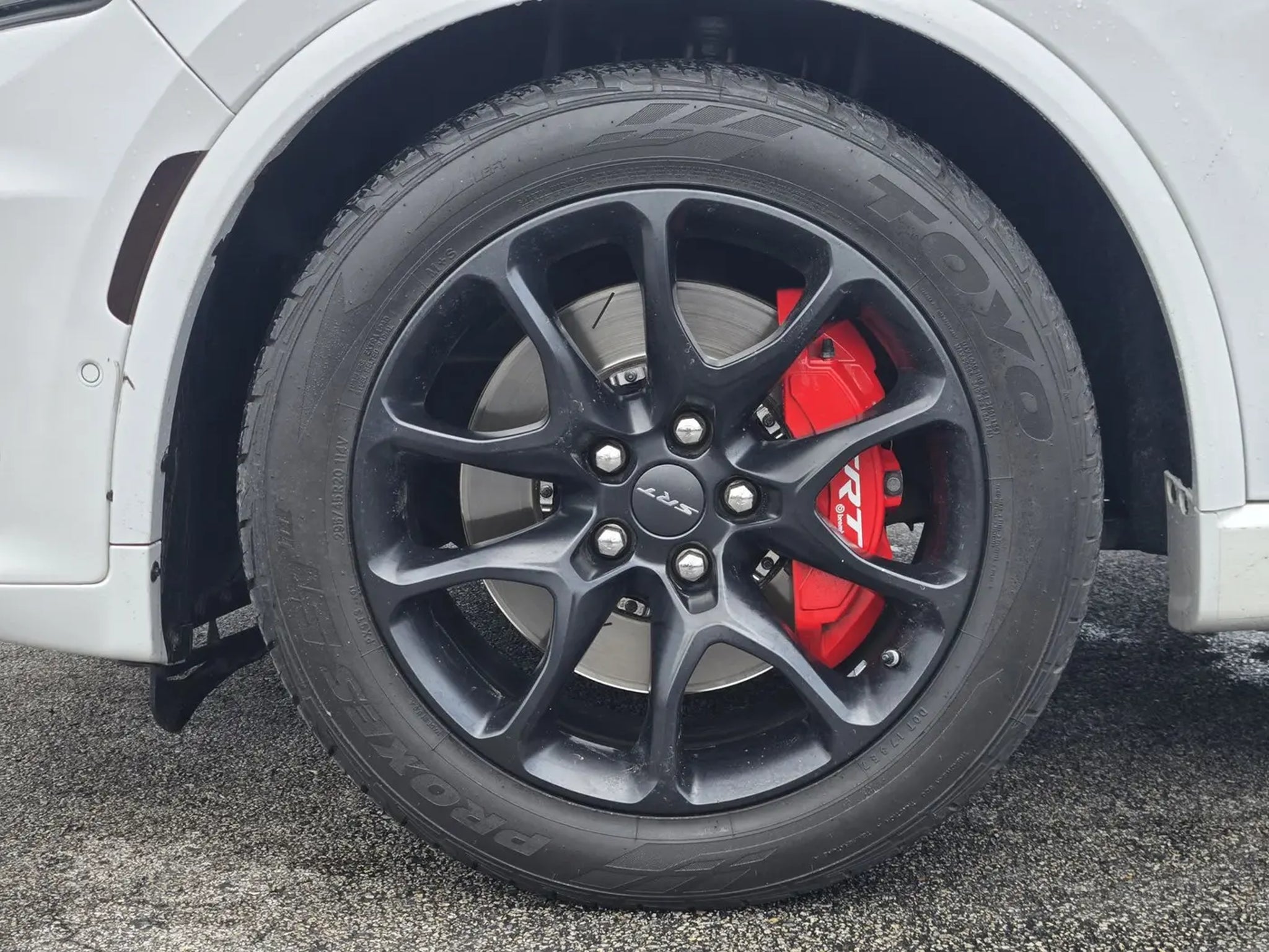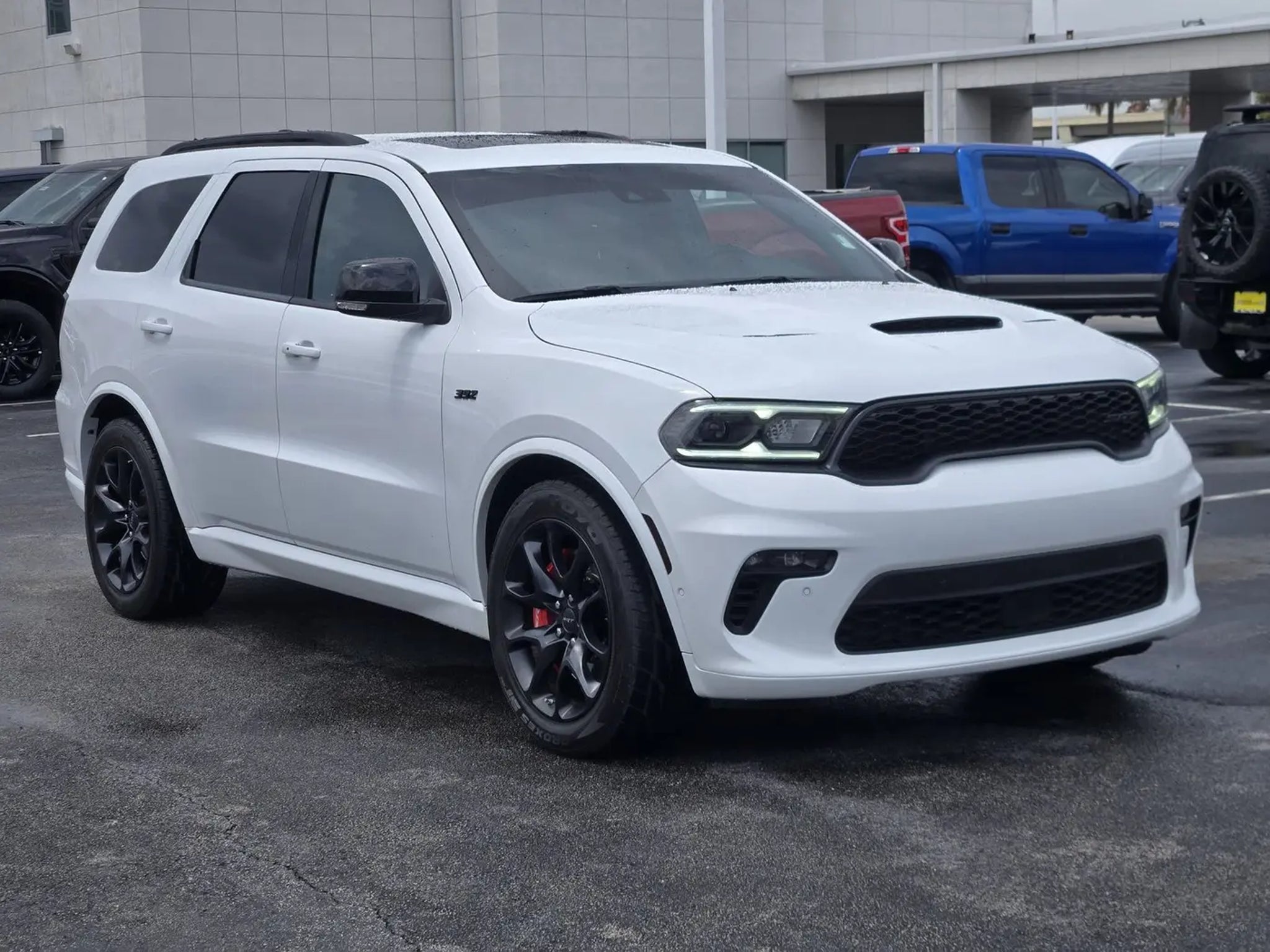 Black Package (Eclipse Black Exhaust Tip, Gray Metallic Badges, Satin Black Dodge Tail Lamp Badge, and Wheels: 20' x 10' Lights Out Aluminum), Quick Order Package 29N SRT 392 Premium (1 USB Charging Port in Console, 12V Auxiliary Power Outlet In Console, 19 harman/kardon Amplified Speakers w/Subwoofer, 2 Pc Red Brembo Front Rotor Brakes, 2nd Row Console w/Armrest Storage, 3rd Row Floor Mat Full Console, 7 4 Pin Wiring Harness, 825 Watt Amplifier, Adaptive Cruise Control w/Stop, Advanced Brake Assist, Black Roof Rails, Class IV Receiver Hitch, Forged Carbon Fiber Interior Accents, Full Speed Forward Collision Warning Plus, High Performance Laguna Leather Seats, Illuminated Rear Cupholders, Integrated Roof Rail Crossbars, Lane Departure Warning Plus, Power Sunroof, Premium Instrument Panel, Red Seat Belts, and Trailer Brake Control), Durango SRT 392, 4D Sport Utility, SRT HEMI 6.4L V8 MDS, 8-Speed Automatic, AWD, White Knuckle Clearcoat, Demonic Red/Black w/High Performance Laguna Leather Seats, 3.70 Rear Axle Ratio, 3rd row seats: split-bench, 4-Wheel Disc Brakes, 9 Speakers, ABS brakes, Air Conditioning, Alloy wheels, AM/FM radio: SiriusXM w/360L, Apple CarPlay/Android Auto, Audio memory, Auto High-beam Headlights, Auto-dimming door mirrors, Auto-dimming Rear-View mirror, Automatic temperature control, Brake assist, Bumpers: body-color, Compass, Delay-off headlights, Driver door bin, Driver vanity mirror, Dual front impact airbags, Dual front side impact airbags, Electronic Stability Control, Emergency communication system: SiriusXM Guardian, Four wheel independent suspension, Front anti-roll bar, Front Bucket Seats, Front Center Armrest w/Storage, Front dual zone A/C, Front fog lights, Front reading lights, Fully automatic headlights, Garage door transmitter, Gloss Black Exterior Mirrors, Heated door mirrors, Heated front seats, Heated rear seats, Heated steering wheel, Illuminated entry, Knee airbag, Leather Shift Knob, Leather steering wheel, Leather Trimmed Bucket Seats, Low tire pressure warning, Manufacturer's Statement of Origin, Memory seat, MOPAR Dual Stripes- Bright Blue, Navigation system: TomTom, Occupant sensing airbag, Outside temperature display, Overhead airbag, Overhead console, Panic alarm, ParkView Rear Back-Up Camera, Passenger door bin, Passenger vanity mirror, Power door mirrors, Power driver seat, Power Liftgate, Power passenger seat, Power steering, Power windows, Radio data system, Radio: Uconnect 5 Nav w/10.1' Display, Rain sensing wipers, Rear air conditioning, Rear anti-roll ba