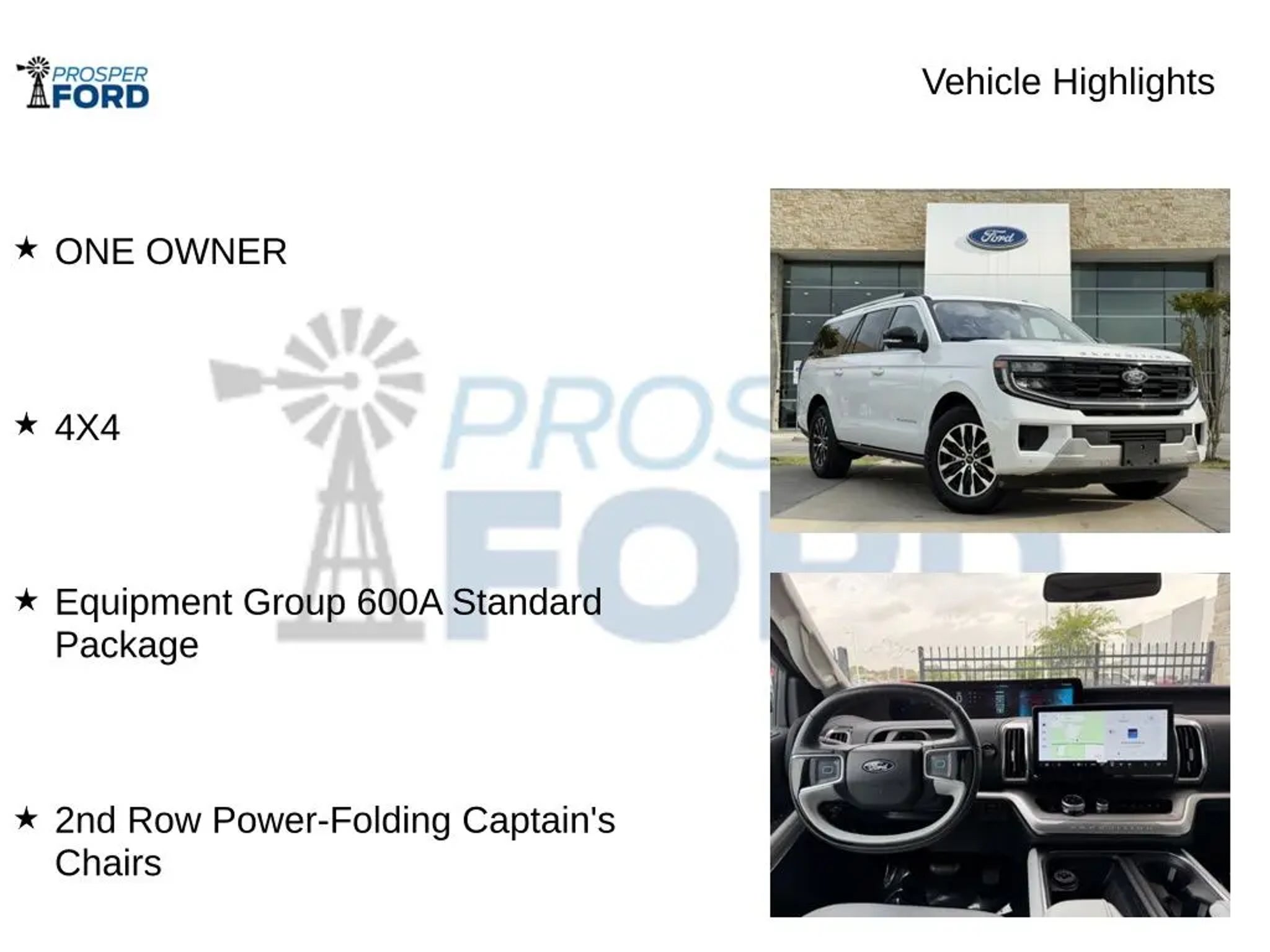 Experience the pinnacle of capability and luxury with the 2025 Ford Expedition Max Platinum. This impressive SUV is engineered to conquer the road with its powerful EcoBoost 3.5L V6 GTDi DOHC 24V Twin Turbocharged engine and 4WD system. Boasting a striking white exterior, the Expedition Max Platinum exudes a commanding presence that is sure to turn heads wherever you go. - One Owner - 4X4 - 2nd Row Power-Folding 40/20/40 Bench Seat - 8-passenger seating, tip-and-slide - Equipment Group 600A Standard Package - 2nd Row Power-Folding Captain's Chairs Step inside and be enveloped in the luxurious cabin, featuring a premium B&O Sound System, dual-zone automatic climate control, and a panoramic Vista Roof that floods the interior with natural light. The heated and ventilated leather front captain's chairs provide exceptional comfort, while the power-folding 2nd-row and 3rd-row seats offer unparalleled versatility to accommodate your passengers and cargo. The Expedition Max Platinum is equipped with a host of advanced technology features, including Apple CarPlay, Android Auto, a Navigation System, and a comprehensive suite of driver-assist technologies. With the convenience of a power liftgate, rain-sensing wipers, and a surround-view camera system, you'll have a seamless and confident driving experience. Safety is paramount in the Expedition Max Platinum, with features like forward collision warning, automatic emergency braking, and a 360-degree camera system to help you navigate with ease. The robust 4-wheel disc brakes and electronic stability control provide the confidence and control you need, no matter the road conditions. Whether you're embarking on a family adventure or tackling your daily commute, the 2025 Ford Expedition Max Platinum is the ultimate companion. Its uncompromising blend of capability, technology, and luxury make it a true standout in the full-size SUV segment. Experience the difference for yourself and schedule a test drive today.