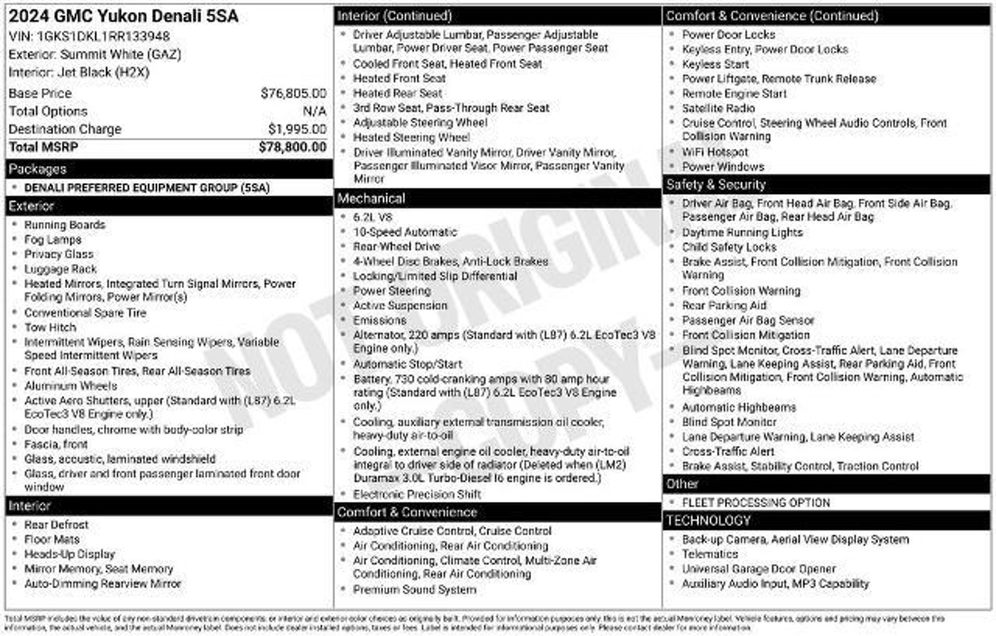 FREE 20 YEAR / 200,000 MILE POWERTRAIN WARRANTY, ONE OWNER, CLEAN CARFAX, BLUETOOTH, SIRIUS XM SATELLITE RADIO, APPLE CARPLAY, GOOGLE ANDROID AUTO, NAVIGATION SYSTEM GPS NAV, BOSE HIGH END SOUND PACKAGE / BOSE SPEAKERS, STEERING WHEEL AUDIO CONTROLS, TOUCH SCREEN CONTROLS, BACKUP CAMERA, HOMELINK UNIVERSAL GARAGE DOOR OPENER, WIRELESS CHARGING, WI-FI HOTSPOT, HEADS-UP DISPLAY, KEYLESS PUSH BUTTON START, AUTOMATIC HEADLIGHTS, COLLISION AVOIDANCE SYSTEM, COLLISION WARNING ALERT SYSTEM, ADAPTIVE CRUISE CONTROL, POWER DRIVER SEAT, POWER PASSENGER SEAT, HEATED/COOLED LEATHER SEATS, HEATED REAR LEATHER SEATS, 2ND ROW BUCKETS, 3RD ROW SEAT, MEMORY PACKAGE / MEMORY SEAT, REMOTE START, POWER LIFTGATE, HEATED STEERING WHEEL, RUNNING BOARDS, DENALI SERIES, PREFERRED EQUIPMENT PACKAGE 5SA, 20 6-SPOKE POLISHED ALUMINUM WHEELS, 14 SPEAKERS, AIR CONDITIONING, AUTO-DIMMING REAR-VIEW MIRROR, AUTO-LEVELING SUSPENSION, AUTOMATIC TEMPERATURE CONTROL, BRAKE ASSIST, COMPASS, DELAY-OFF HEADLIGHTS, DRIVER VANITY MIRROR, DUAL FRONT IMPACT AIRBAGS, DUAL FRONT SIDE IMPACT AIRBAGS, EMERGENCY COMMUNICATION SYSTEM: ONSTAR AND GMC CONNECTED SERVICES CAPABLE, FLOOR CONSOLE, FOLLOWING DISTANCE INDICATOR, FRONT DUAL ZONE A/C, FRONT FOG LIGHTS, HEATED DOOR MIRRORS, LOW TIRE PRESSURE WARNING, MAGNETIC RIDE CONTROL SUSPENSION, OCCUPANT SENSING AIRBAG, PANIC ALARM, PASSENGER VANITY MIRROR, POWER DOOR MIRRORS, POWER RELEASE 2ND ROW BUCKET SEATS, POWER WINDOWS, RAIN SENSING WIPERS, REAR AIR CONDITIONING, REAR WINDOW DEFROSTER, REAR WINDOW WIPER, REMOTE KEYLESS ENTRY, SPEED-SENSING STEERING, STEERING WHEEL MEMORY, TELESCOPING STEERING WHEEL, TILT STEERING WHEEL, TURN SIGNAL INDICATOR MIRRORS, VARIABLY INTERMITTENT WIPERS.