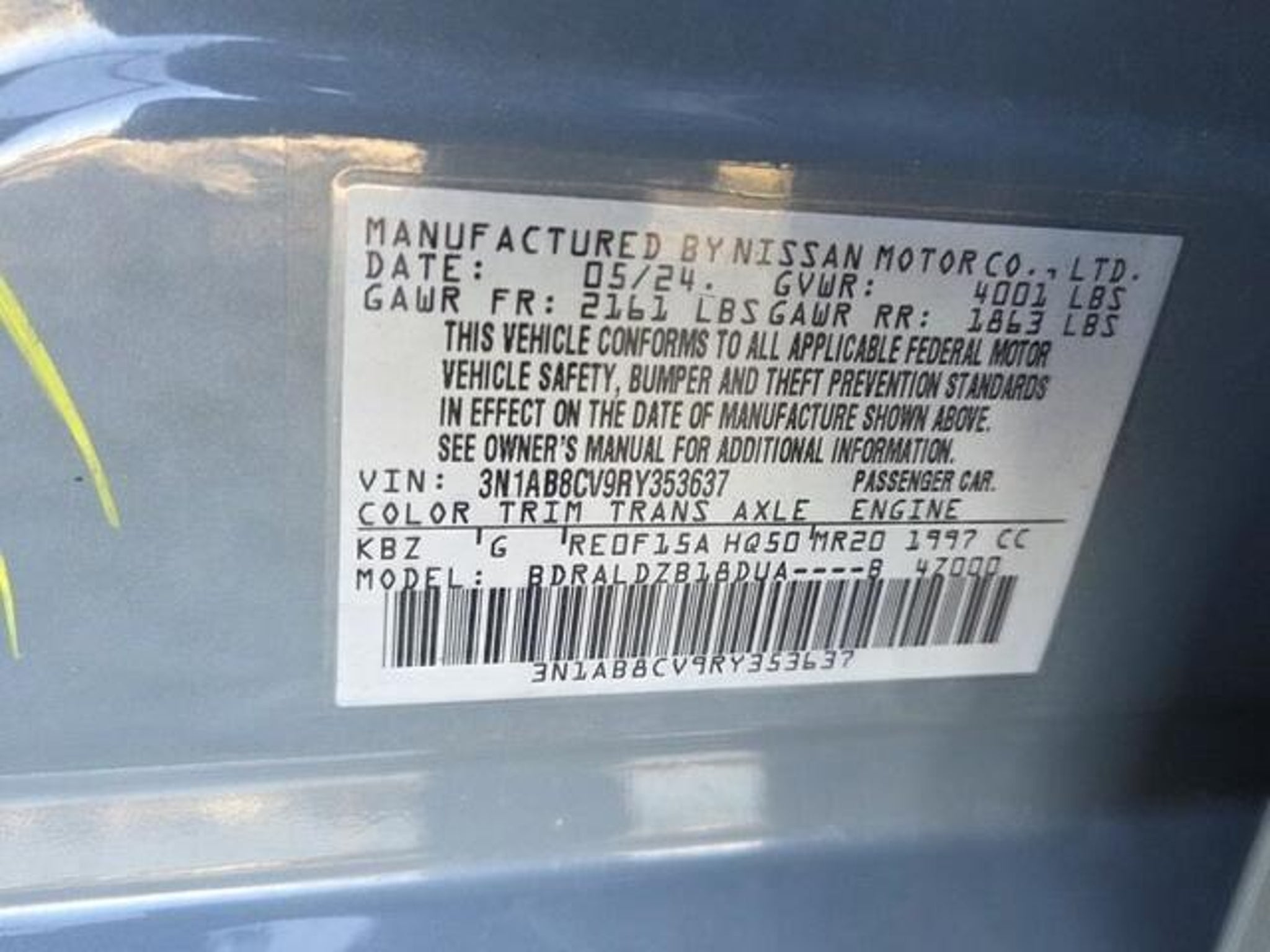 VIN 3N1AB8CV9RY353637