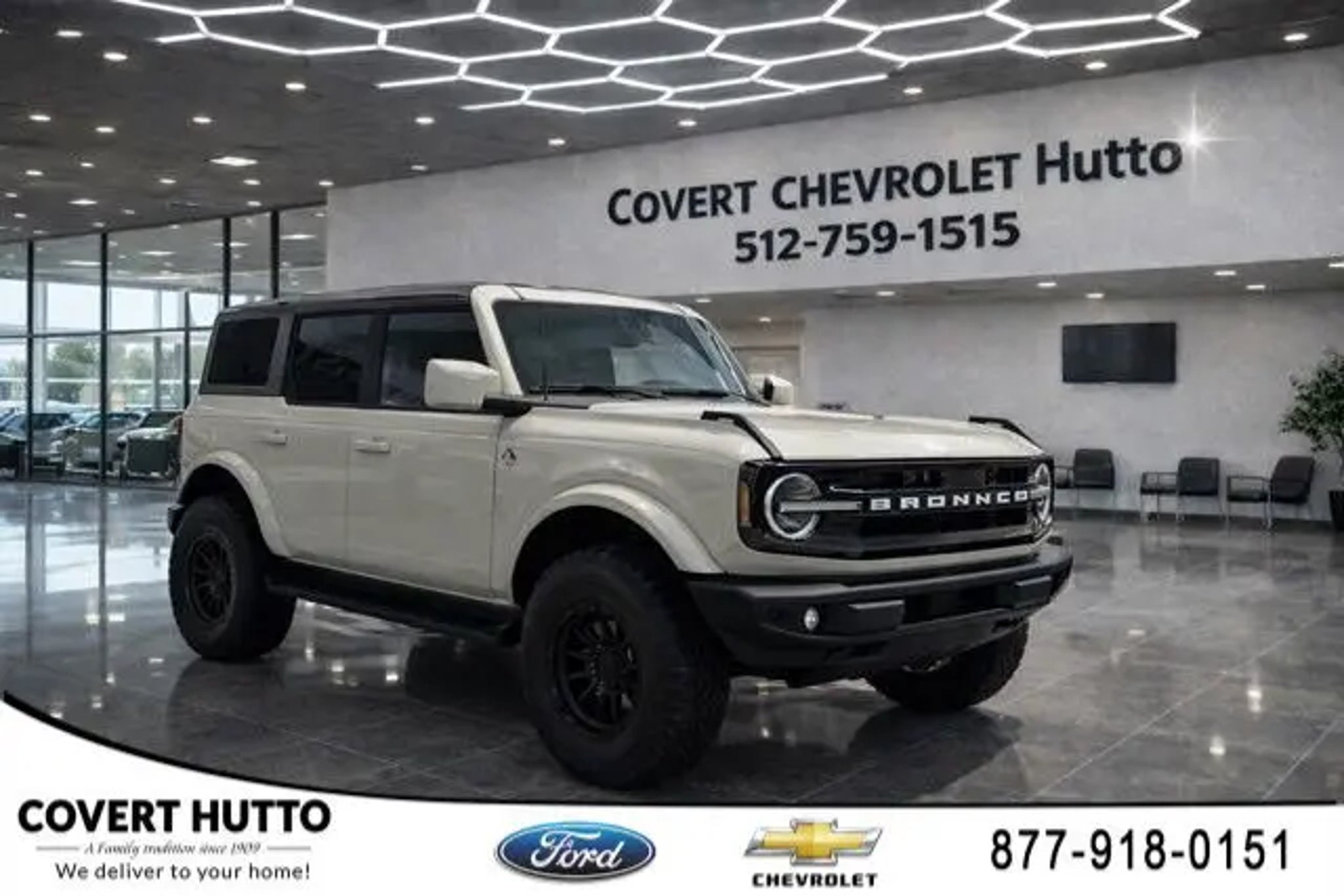 Welcome to Covert Chevy of Hutto, proudly serving Central Texas with quality pre-owned vehicles and exceptional value. Call Covert Chevrolet of Hutto at 512-759-1515 to schedule your VIP appointment or learn more about this vehicle today.This 2026 Ford Bronco Outer Banks LIFTED is a true off-road adventurer, ready to take you on unforgettable journeys. Boasting a powerful 2.7L EcoBoost V6 engine, 4WD capabilities, and a 10-speed automatic transmission, this Bronco delivers impressive performance both on and off the beaten path. Outfitted with a lifted suspension, rugged all-terrain tires, and a painted hard top, this Bronco is primed for your next outdoor excursion.- BLIND SPOT MONITORING- CLEAN CARFAX- HEATED SEATS- LEATHER- LIFT WITH ARENA WHEELS AND NITTO OFF ROAD TIRES!!!- NON SMOKER- ONE OWNER- EQUIPMENT GROUP 314A LUX PACKAGE- PAINTED HARD TOP- 2.7L V6 Twin Turbocharged (EcoBoost)Slip behind the wheel and experience the unparalleled comfort and convenience of this Bronco's Lux Package. Enjoy the premium Bang & Olufsen sound system, adaptive cruise control, and 360-degree camera for a seamless driving experience. The heated leather-trimmed seats and steering wheel will keep you cozy, while the information on demand panel and connected navigation ensure you're always informed and connected.Whether you're tackling the trails or cruising down the highway, this 2026 Ford Bronco Outer Banks LIFTED is ready to elevate your driving experience. With its exceptional off-road capabilities, premium features, and striking appearance, this Bronco is the perfect companion for your next adventure.Don't miss your chance to own this remarkable vehicle. Schedule your VIP appointment with Covert Chevrolet of Hutto today and let us help you experience the thrill of the open road in this exceptional 2026 Ford Bronco Outer Banks LIFTED.Family owned since 1909, Covert Chevrolet of Hutto is proud to serve drivers across Central Texas including Austin (78701, 78705, 78746, 78753, 78642, 78758), Hutto (78634), Pflugerville (78660), Round Rock (78681), and Georgetown (78628, 78626). Experience the trusted service and selection that Central Texas drivers have relied on for generations.