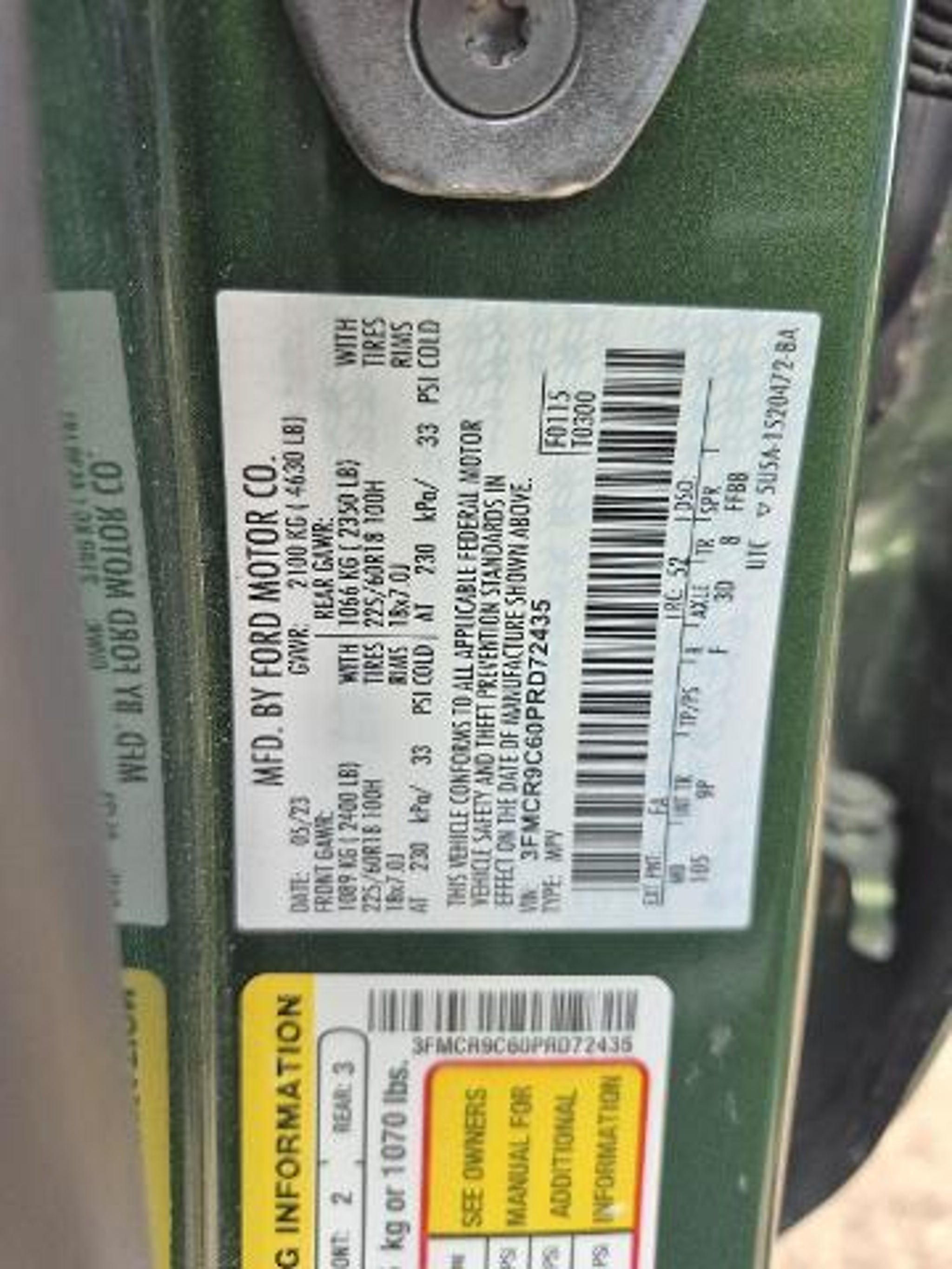 VIN 3FMCR9C60PRD72435