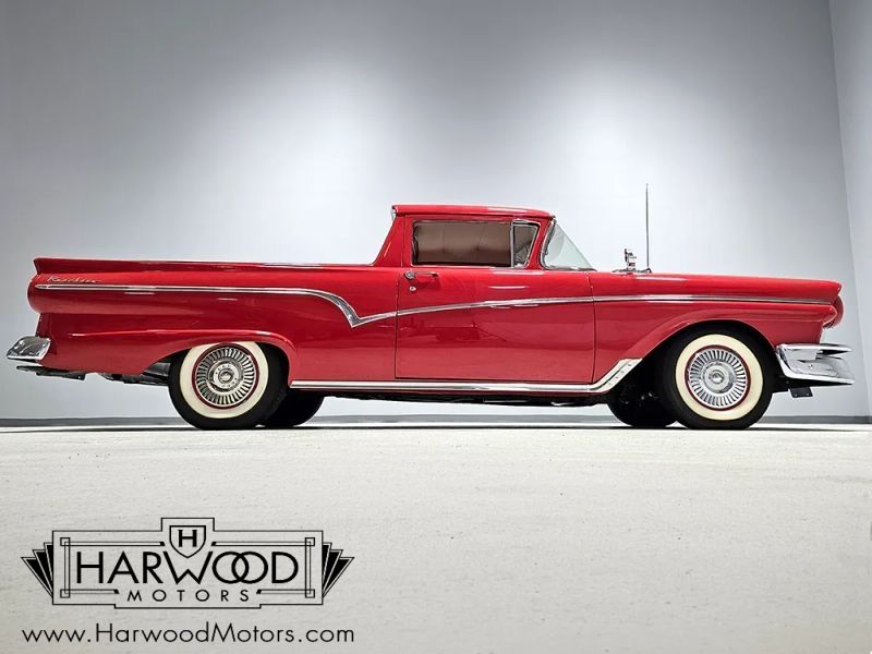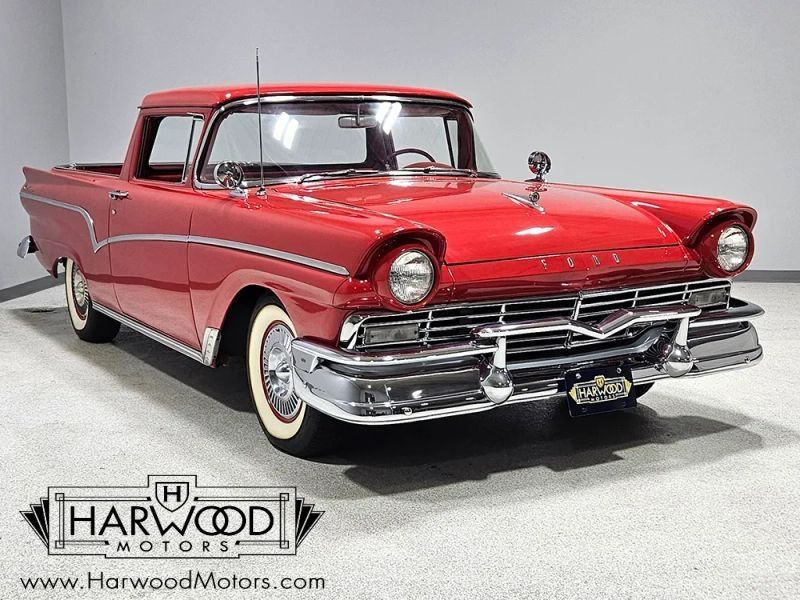 The El Camino seems to be the most well-known of the truck/cars, but Ford was on the scene first with the all-new 1957 Ranchero. Thanks to a big redesign of the Fairlane, the Ranchero could enjoy full-sized car performance with a big dose of practicality in the full-sized pickup bed. And thats ignoring the fact that it is flat-out gorgeous. This 1957 Ford Ranchero is a real-deal E-code model (its right there in the VIN), meaning it packs a 312 cubic inch Thunderbird V8 with dual 4-barrel carburetors. A strange option on a utility vehicle, but a very cool find in todays world. Perhaps due to its rarity, this one received a very high-quality body-off restoration several years ago and remains in outstanding condition today. It shows 3751 miles since it was finished, but it still presents quite well, with a deep gloss to the finish, laser-straight bodywork underneath, and fit and finish that are probably better than Ford was doing in 1957. And, of course, on any 50s car, the chrome and stainless trim is critical, so youll be relieved to note that all the brightwork is in excellent shape. Accessories include a front grille guard, dual fender-mounted mirrors, and those twin exhaust tips peeking out from under the rear bumper, perhaps warning onlookers that this is no garden-variety Ranchero. It also comes with a set of factory steel fender skirts (not currently installed). There was obviously a great deal of money invested here.