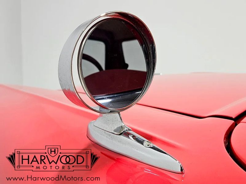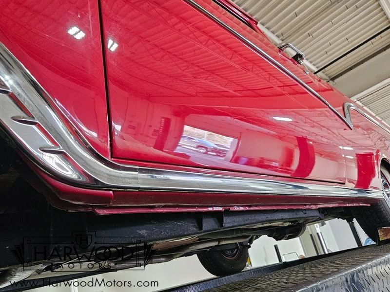 The two-tone red and white interior is how the car was originally specd and was fully restored with the rest of the car. The wide bench seat is still firm and supportive, and the pleated seat cover is an exact match for the original. Likewise, the door panels, floor mats, and headliner were all replaced, the dash was repainted to match the bodywork, and the color-matched steering wheel is in great shape. A big arching speedometer dominates the dash, flanked by fuel and temperature gauges, along with idiot lights for oil pressure and generator output, and they all work properly. Heater controls are simple and intuitive, and theres an operational "Town & Country" AM radio in the dash. The clock apparently works but has been disconnected to prevent damage and running down the battery when stored. Theres also a full-sized spare and factory jack assembly stashed behind the passenger-side seat.