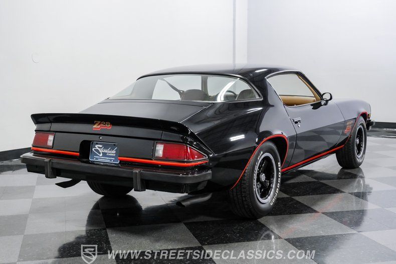 Few cars have changed as drastically from generation to generation quite like the Chevy Camaro. This numbers-matching 1977 Chevrolet Camaro Z28 exemplifies the low-slung, swoopy demeanor that defined this model's second generation. Fully professionally repainted in its factory-correct Code 19 Starlight Black exterior paint color, complete with its correct red Z/28 decals to go along with its black-painted factory bumpers, matching black chin and rear spoilers, letting onlookers know this car is ready to take on all challengers.