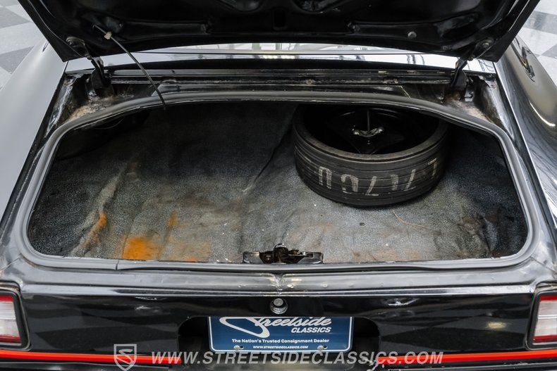 Under the hood, we find a numbers-matching 350 cubic-inch V8 motor. Featuring a four-barrel Edelbrock carburetor and matching intake, this small block also sports its factory air cleaner and fresh air intake that is still functional, making this a very unusual and rare find. That power is funneled through a believed original four-speed manual transmission before heading out to the ten-bolt rear end that transfers those ponies to the pavement via 15-inch black-painted factory wheels shod in white-lettered BFGoodrich tires.