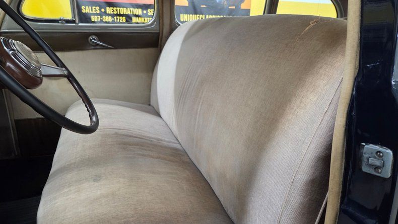 Classic 1947 Ford Deluxe with original 239 cubic inch flathead V8 engine. Equipped with a 3-speed manual transmission mounted on the steering column. Dark navy blue paint with plenty of brightwork, and wide whitewall radial tires. Suicide-style rear doors providing spacious interior access Maintained 6-volt electrical system with recent battery replacement.