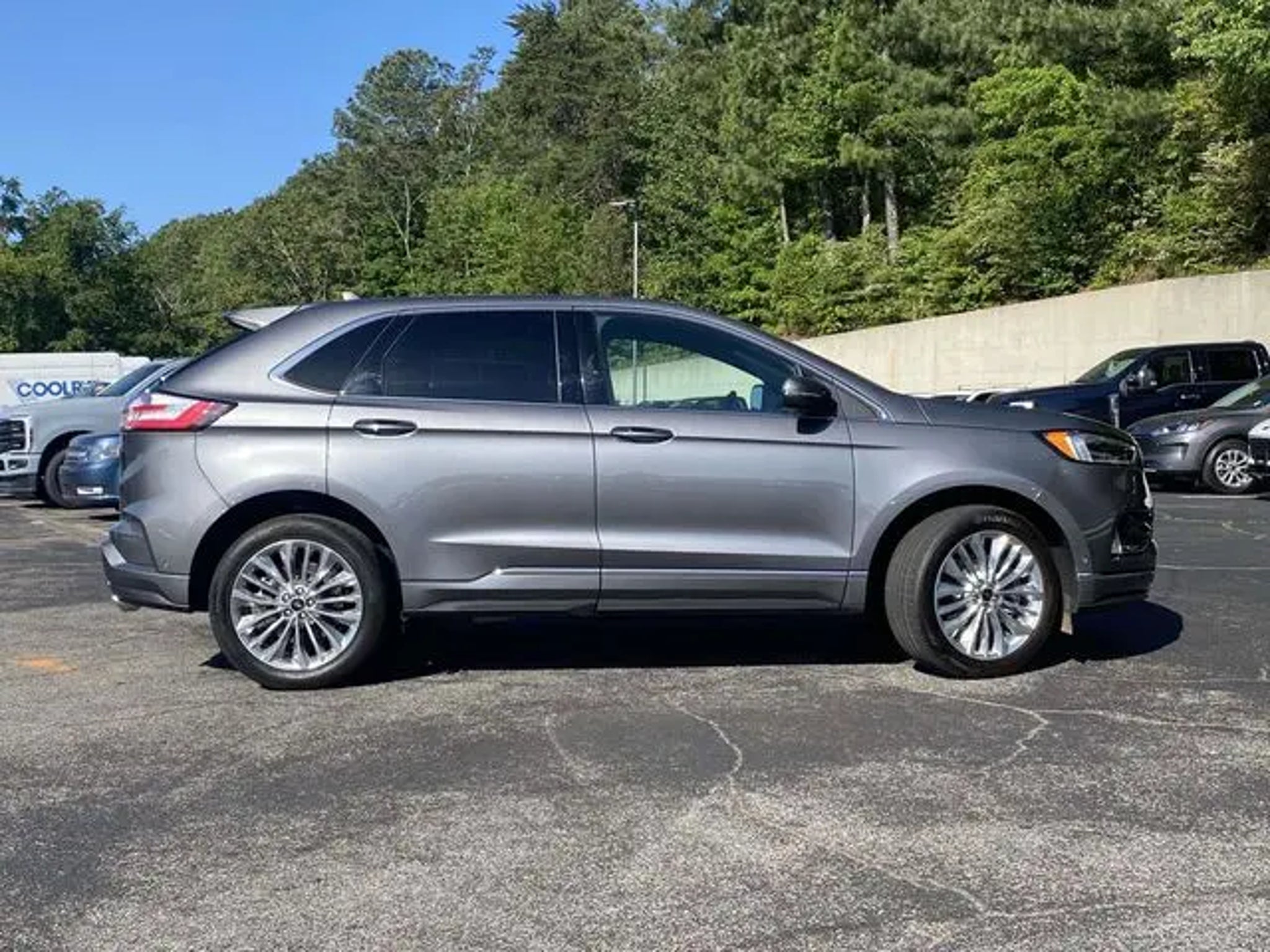 This 2024 Ford Edge Titanium is a remarkable SUV that offers a winning combination of style, performance, and advanced technology. Let's explore the features that make this vehicle a standout choice: - Front & Rear Floor Liners w/Carpet Mats - Equipment Group 301A - Titanium Elite Package - Heated Rear Seats, Adaptive Cruise Control w/Stop & Go, Lane Centering, Power Tilt/Telescoping Steering Column w/Memory, Adaptive LED Headlamps, Auto-Dimming Driver's Sideview Mirror, Bright Chrome Accents & Surround Upper Grille, 3D Diamond Front Console Surface Area, 3D Diamond Instrument Panel Appliques, Connected Navigation, Enhanced Active Park Assist, Evasive Steering Assist, Front 180-Degree Camera w/Split View, Cooled Front Seats, 20 Polished Aluminum Wheels This Edge Titanium is a true standout, boasting a sleek Gray exterior and a powerful EcoBoost 2.0L I4 GTDi DOHC Turbocharged VCT engine with 8-Speed Automatic transmission and AWD. With an impressive EPA-estimated 21 MPG in the city and 28 MPG on the highway, this SUV delivers exceptional efficiency without sacrificing performance. Certified by Ford, this Edge Titanium has been meticulously inspected and comes with the peace of mind of a comprehensive warranty. You can trust that this vehicle has been thoroughly vetted and is ready to provide you with a seamless and enjoyable driving experience. The Edge Titanium's interior is equally impressive, with premium ActiveX-Trimmed Heated Sport Bucket Seats, a stunning Panoramic Vista Roof, and a state-of-the-art B&O Sound System by Bang & Olufsen. The advanced SYNC 4A with Enhanced Voice Recognition and connected navigation services ensure you stay connected and informed on the go. Elevate your driving experience with this exceptional 2024 Ford Edge Titanium. Visit our showroom today to see it in person and discover why this SUV is the perfect fit for your lifestyle. Price includes $1000 Trade In Assistance Discount.