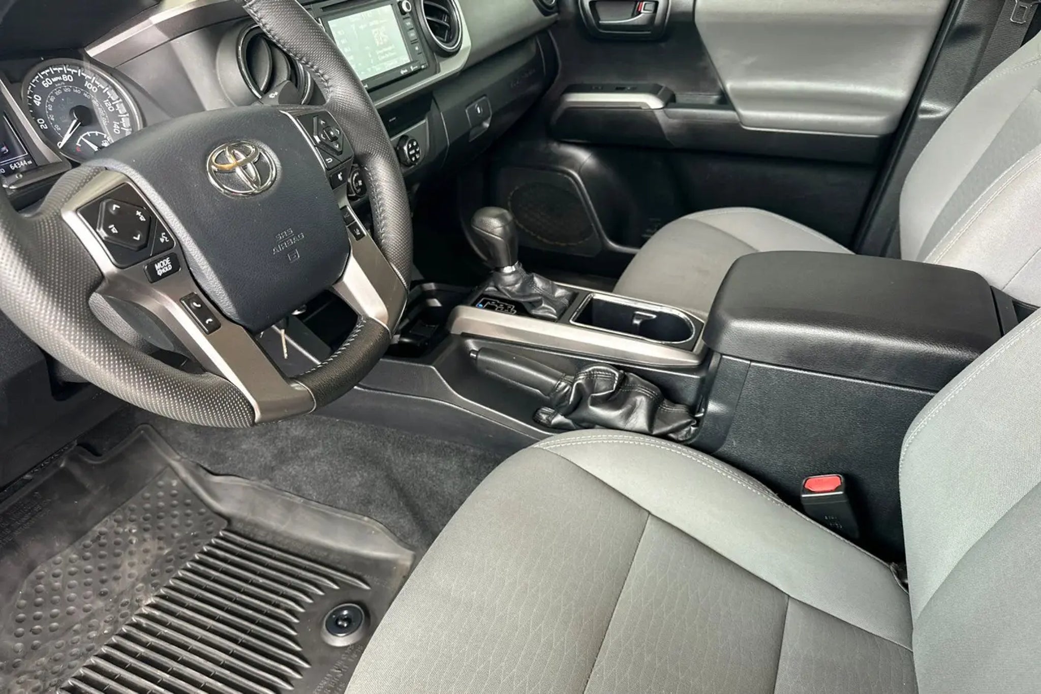 Accessories F AA 16 Black Alloy Wheels F ED Entune Audio Plus: All Content Included as Standard Equipment F FE 50 State Emissions F SL SR5 Package: All Content Included as Standard Equipment P DK Preferred Owner's Portfolio P MF Mudguards MECHANICAL & PERFORMANCE 3.5L V6 Atkinson Cycle with Dual VVT-i 278hp @ 6000rpm/265 lb-ft @ 4600rpm 6-Spd Automatic Transmission 4WDemand: Part-Time 4x4 Sys w/2-Speed Electronically Controlled Transfer Case Automatic Limited-Slip Differential Towing Receiver Hitch, Eng Oil Cooler, Pwr Steering Cooler, 130-Amp Alt, 4/7-Pin Connector, & Trailer Sway Cntrl Coil Spring Double Wishbone Fr & Leaf Spring Rr Suspension 16 Alloy Wheel w/P245/75R16 Tires SAFETY & CONVENIENCE Toyota Safety Sense P: Pre-Collision Sys w/Pedestrian Detection, Dynamic Radar Cruise Control, Lane Departure Alert w/ Sway Warning Sys, Automatic High Beams Rear Backup Camera Dr & Fr Pass Advanced Airbag System Seat-Mounted Side & Side Curtain Airbags 3-Pt Seatbelts for All Seating Positions Tire Pressure Monitor Sys w/Auto Locate EXTERIOR Prjctr Beam Hdlghts w/Intgrtd Fog Lghts Pwr Side Mirrors 5' Composite Bed Easy Lower,Lockable & Removable Tailgate Deck Rail System w/4 Adj Tie-Down Cleats INTERIOR Fabric Trim Seats w/Dr Lumbar Support Lthr Trim Steering Wheel w/Audio Cntrls Pwr Horizontal Rr Window w/Priv Glass Pwr Wndws w/Dr Auto Dwn and Pwr Door Locks Entune Audio Plus, 6.1 Touch Screen, AM/FM/CD, 1 USB Media Port, 2 USB Charge Ports, HandsFree BT Phone/Music, SiriusXM w/3-month All Access Trial, Tacoma SR5 V6, 4D Double Cab, 3.5L V6 PDI DOHC 24V LEV3-ULEV70 278hp, 6-Speed Automatic, 4WD, Cement Gray w/Fabric Seat Trim. Odometer is 12408 miles below market average! CARFAX One-Owner. Simple Price, Simple Process. Awards: * 2019 KBB.com Best Resale Value Awards * 2019 KBB.com Brand Image Awards