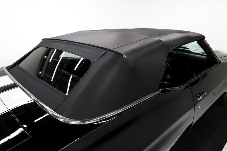 EXTERIOR: For a 15 year old restoration, especially finished in black this Chevelle has held up remarkably well. The body is absolutely straight, and the panels fit beautifully throughout. It has been refinished in its factory born Tuxedo Black color, giving it a timeless and aggressive presence. Born without stripes, the stripes currently on the car are authentic style decals that can be removed if desired. It also features a functional cowl induction hood with the working flapper door and racing hood pins. At the time of restoration, all of the chrome and trim were replaced, along with the windshield and weatherstrips. The black convertible top with a glass rear window was replaced as well. Completing the authentic appearance is a correctly restored set of SS wheels wrapped in Firestone Wide Oval tires, giving this Chevelle the perfect period correct stance.