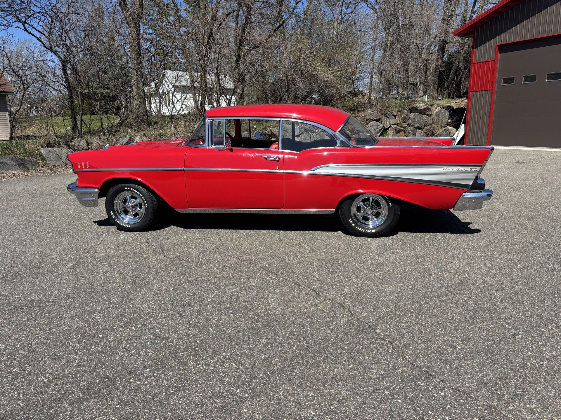 1957 Chevrolet Belair Small Block V8_ 4 Speed Manuel Tranny_ Hurst Shifter_ Headers_ Aluinmun Radiator_ Dual Exhaust_ Clean under side_ All new interior_ Rechormed bumpers_ outstanding paint_ Cragers Wheels for more info call jordan at 612 290 9299 Video https://www.youtube.com/watch?v=LIPGsugZqq8
