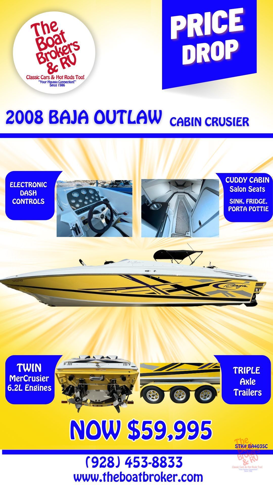 own ($14,998), estimated payments start around $355/mo. Call The Boat Brokers at (928) 453-8833 or come see it in person at our Lake Havasu City lot.