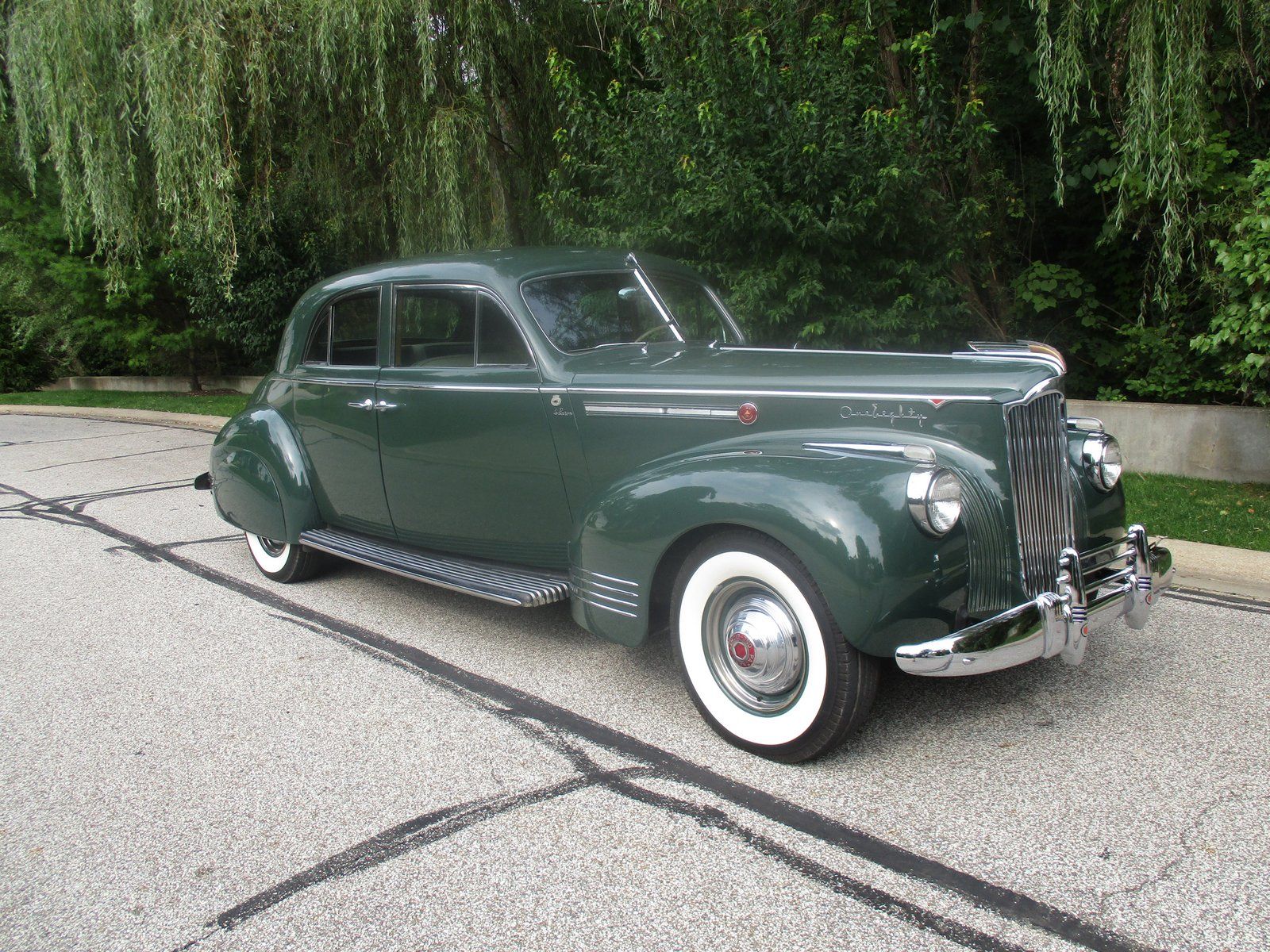 This 1941 Packard One-Eighty LeBaron is one of 99 examples produced and 20 known survivors. Formerly owned by Harrah’s Automobile Collection and Richard Gold. Only 48,000 actual miles sympathetic and well maintained restoration. Among the last and most beautiful “semi- custom” Packards. Classic Car Club (CCCA) Full Classic. Most of the coachbuilder LeBarons final catalogued Packard offerings were formal limousines, which were to be driven by a chauffer. However, in 1941 only, an “owner driver” variant, the sport brougham, could also be had. It was essentially Packards version of the Cadillac Series 60 Special, and it featured a striking design. It has narrow chrome window frames and a formal rear window. Only 99 sport broughams were built. The sport brougham was sold by California dealer Earle C Anthony to Harrah’s Automobile Collection in 1968 and was displayed until 1984. In 1984 Richard Gold purchased with 38,199 original miles. Mr. Gold performed a sympathetic frame-on restoration since the car’s body did not need to be removed from the frame. This work earned CCCA Senior Premier Honors, badge no. 1595. The car now shows 48,900 actual miles at the time of cataloging, and the owner notes that on its two recent CCC CARavans on Diamondback radial tires it performed flawlessly. All of the accessories work, including the hydraulic windows and factory-installed overdrive. The car is also equipped with its original deluxe heater and electric fuel pump. The original vehicle plate and Earle C. Anthony tag were retained, and is offered with the Harrah’s sale, registration, and mileage documentation. This car is a fine example of one of the rarest late pre-war Packards and has been beautifully conserved by passionate caretakers.