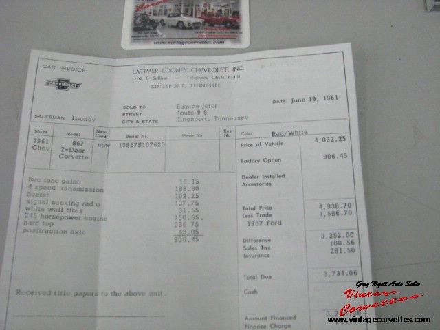 Survivor, 2 Owner car, Roman Red, Red interior, White Coves and Soft Top, All correct born with 283-245hp 4 Speed, Posi Rear, Two Tone Paint, Both Tops, White wall tires, Radio, Heater, All Glove box paperwork, Copy of Original sales invoice, Warranty Book with Originals owners name, Same 2nd owner from 1968, Original Owners manual, Owner history on Original owner when Purchase New, Owner manual pouch from New, Car purchased New at Latimer-Looney Chevrolet in Kingsport, Tenn. By the Original Owner that Lived in Kingsport, Tenn, Car located in Kingsport its entire Life, 80% Original Paint, Engine and Drivetrain restored and Rebuilt, 87k Original Miles, No Hit Body and Perfect Frame.