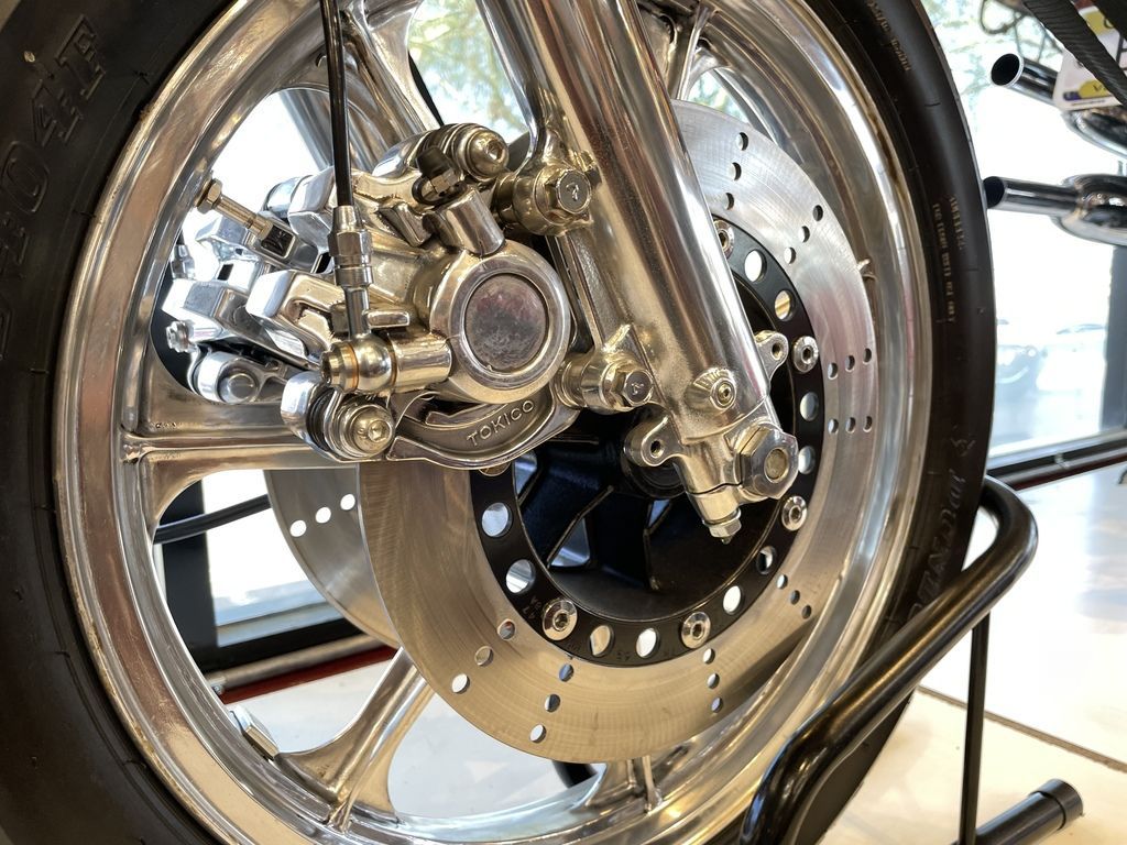 This concourse quality motorcycle has had every single part renewed, polished or coated giving it the look, ride and performance of a new motorcycle while maintaining the look of the classic Goose movie bike.
