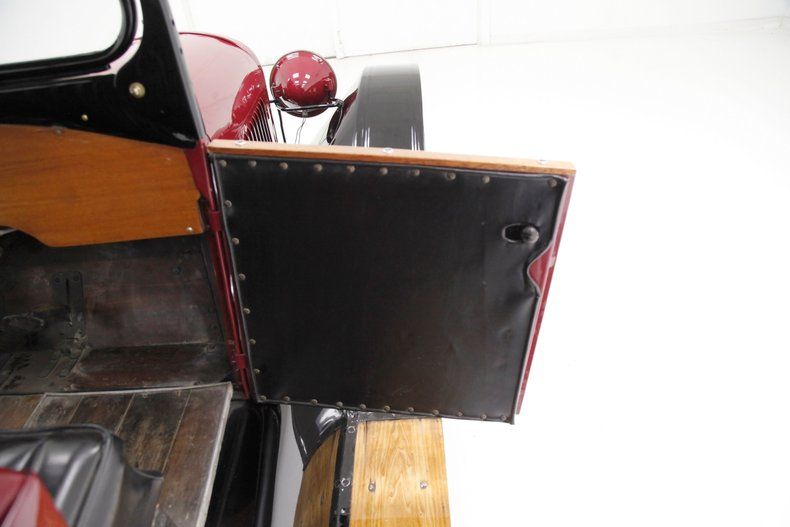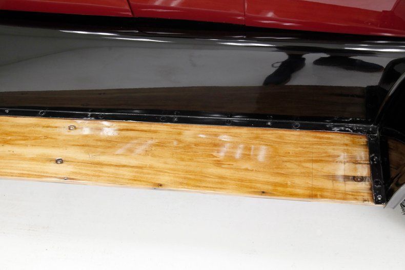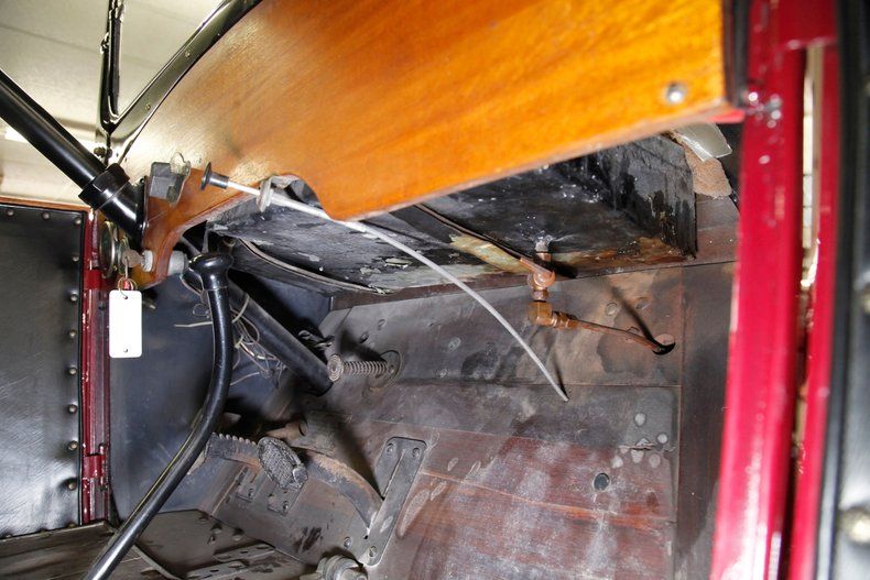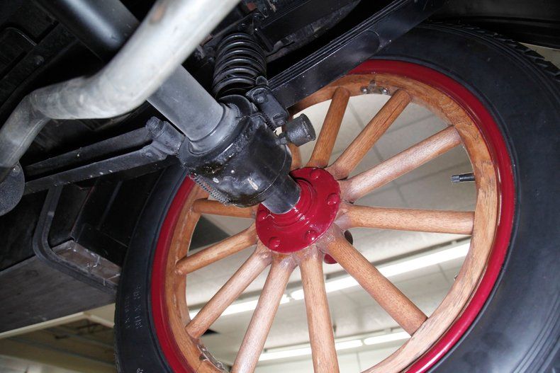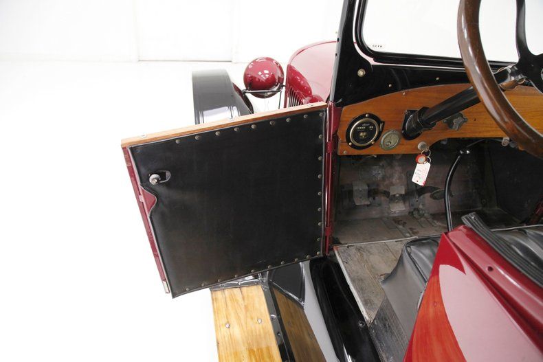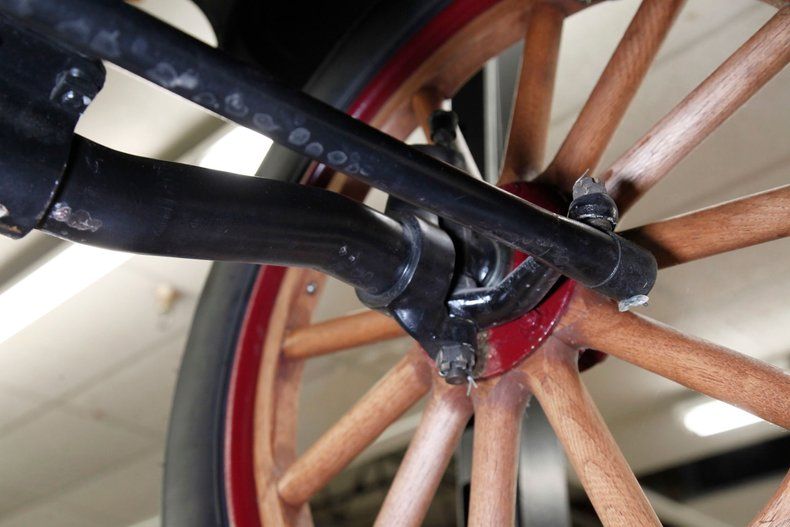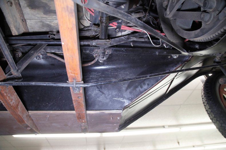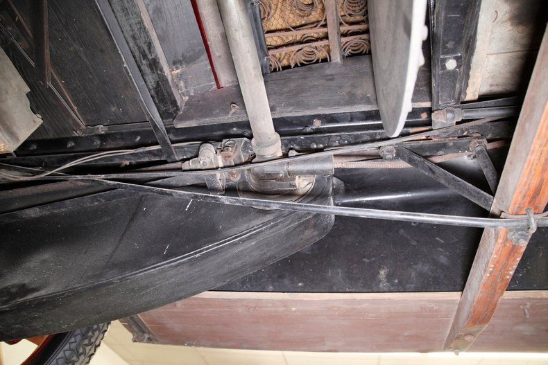 Also beautifully restored with black smooth vinyl in very good condition covering the door panels with beautiful oak top sills. A wonderful glossy oak fronted dash curves up to the front windshield and in front of the driver is a utilitarian speedometer/odometer and ammeter all in perfect condition sitting behind a walnut wood steering wheel. Heavily tufted black tuck and roll vinyl covers the wrap around bench seats both front and rear with the rear of the front seat tub being finished in body matching maroon. Weathered oak planks cover the floor upfront, and the same is seen in the rear, albeit with less wear. This interior is definitely all buttoned up, well done, and in very nicely presenting condition.