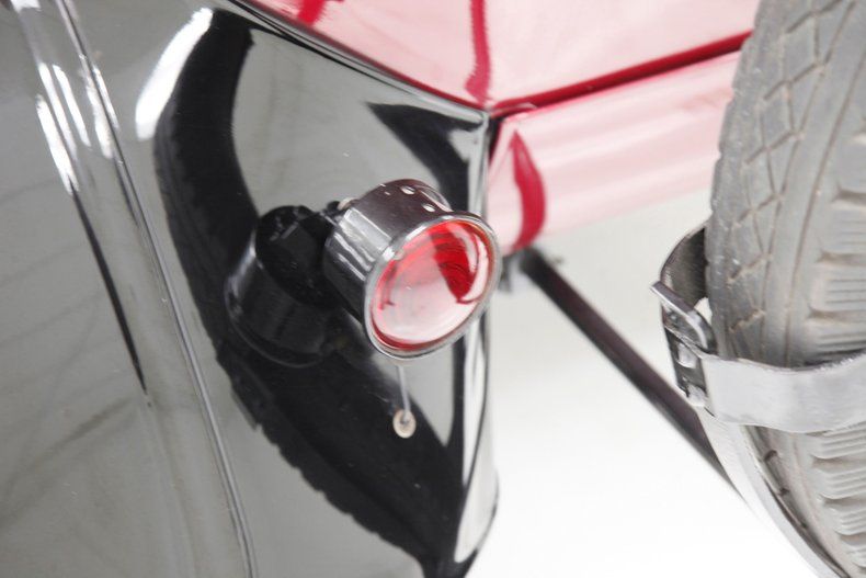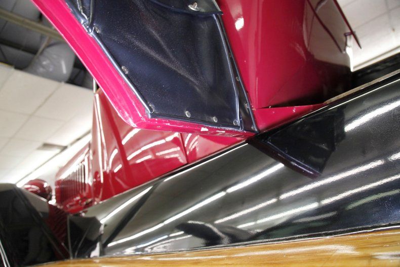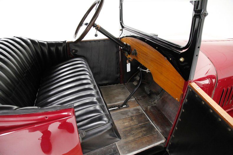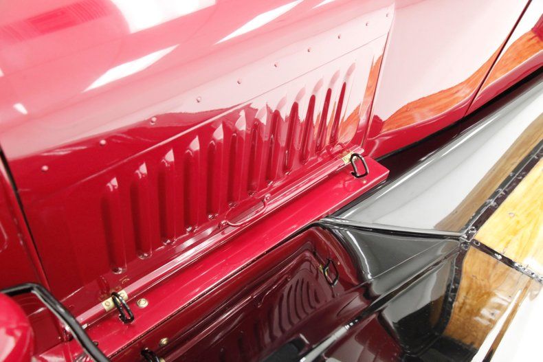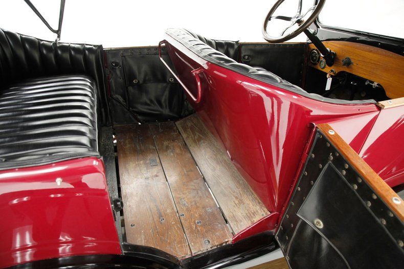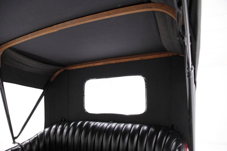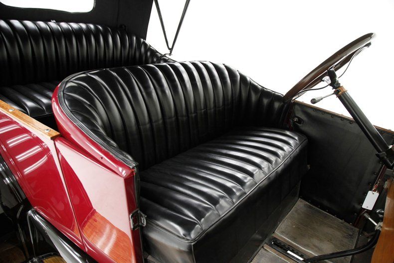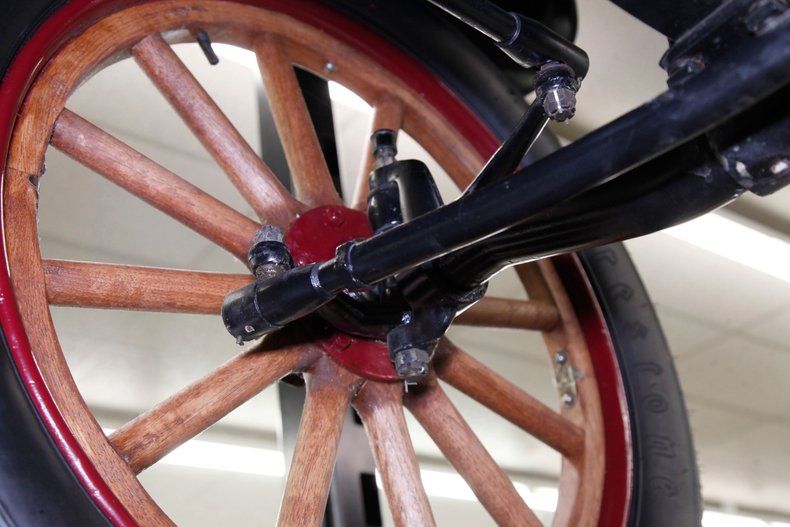 Also beautifully restored with black smooth vinyl in very good condition covering the door panels with beautiful oak top sills. A wonderful glossy oak fronted dash curves up to the front windshield and in front of the driver is a utilitarian speedometer/odometer and ammeter all in perfect condition sitting behind a walnut wood steering wheel. Heavily tufted black tuck and roll vinyl covers the wrap around bench seats both front and rear with the rear of the front seat tub being finished in body matching maroon. Weathered oak planks cover the floor upfront, and the same is seen in the rear, albeit with less wear. This interior is definitely all buttoned up, well done, and in very nicely presenting condition.