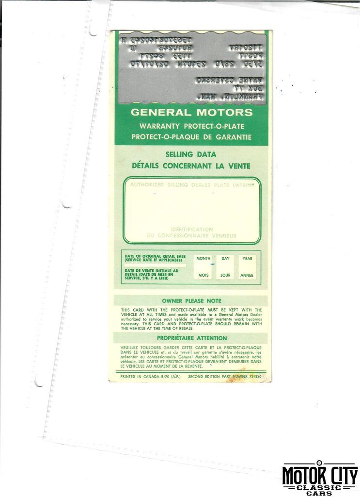 Produced in the Kansas City, MO plant and originally delivered new by Mystery Lake Motors in Thompson, Manitoba, Canada, this 1970 Chevelle SS is powered by its matching-numbers LS6 454ci/450hp Turbo-Jet V8 tied to a M22 Muncie Rock Crusher 4-speed manual transmission. 12-bolt differential, Holley 4-barrell carburetor, Winters aluminum intake, solid lifter cam, dual exhaust, ZL2 cowl-induction hood RPO Z15 added engine chrome, bright exhaust tips, power front disc brakes and heavy-duty suspension round out an outstanding Chevelle build. Added power-steering lends to a great drive. Finished on the exterior in its correct Classic White with black SS stripes, all around the exterior of this car it is obvious that it experienced great restoration, maintenance and care. Wheel well brightwork, chrome bumpers, SS454 callouts and 5-spoke SS wheels sitting on correct F70 14" Firestone Wide Oval white-letter tires round out an outstanding exterior. Open and door and the contrasting correct code 788 red vinyl Strato bucket seats with center console jump out at you. There is something about red interior against a white exterior that stirs something inside a muscle car lover and this interior does just that. The interior of this car presents the same as the exterior in terms of care and maintenance. Loaded with documentation, this car comes with original build sheet, original warranty card, original new new vehicle warranty and owner Protection Plan with original owner's handwritten information when delivery was taken on February 7, 1970. Original GM of Canada warranty document and GM of Canada Documentation with every RPO code listed is also included.