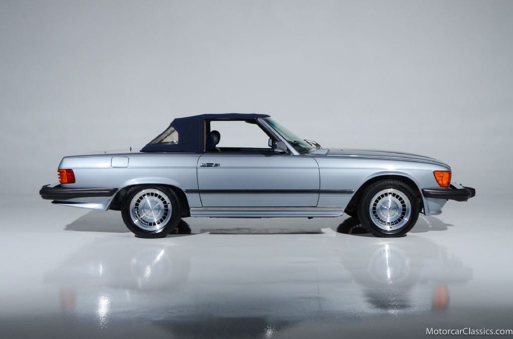 Historically, the R107-generation SL is one of Mercedes-Benz's longest-running and most successful models, produced from 1971 through 1989 and often regarded as a defining luxury roadster of the 1970s and 1980s. The 450 SL's 4.5-liter V8, paired with an automatic transmission, delivered refined performance and long-distance comfort, helping solidify Mercedes' reputation for building robust, effortlessly capable GT cars during its socalled golden era of engineering. As safety and build quality benchmarks of their time, these cars introduced advanced structural engineering and creature comforts that many rivals did not match for years, further enhancing their status as automotive icons.