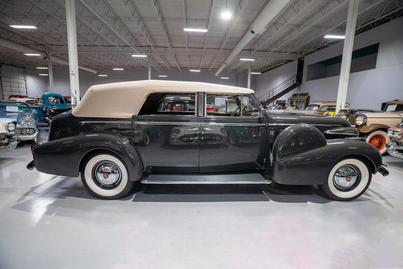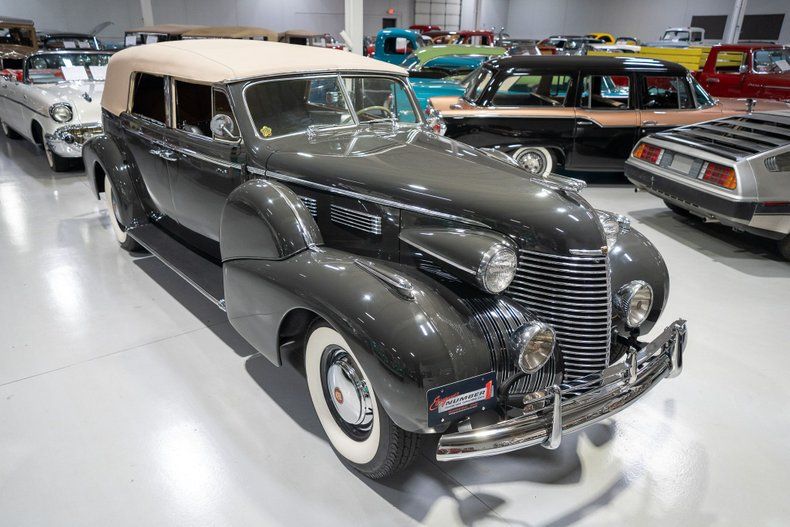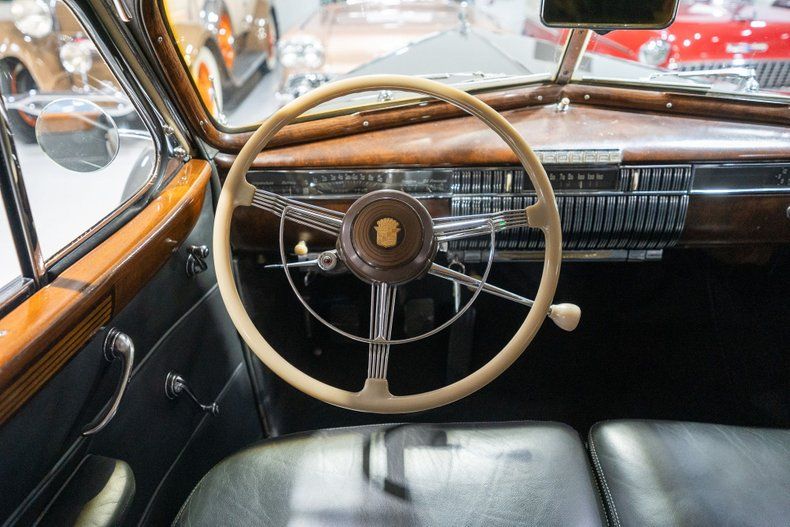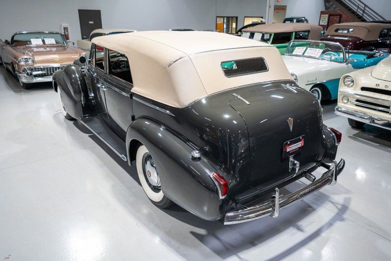 This 1940 Cadillac Series 75 Fleetwood Convertible Sedan is a beautifully restored pre-war convertible that is a CCCA Full Classic and ready for some serious cruising! For two reasons, 1940 marked the end of an era for the Cadillac Division of General Motors. First, 1940 was the final year of production for Cadillac's companion brand, LaSalle, that Cadillac's leadership determined was encroaching on and hampering Cadillac sales. Second, the 1940 model year was the final year for Cadillac's famous V-16 engine after a decade long production run. Cadillac's 1940 car lineup was essentially divided into two categories, the final year V-16 Series 90 and the V8-equipped passenger cars including the Sixty Special and the Series 62, 72, and 75. Sitting atop Cadillac's V8 hierarchy was of course the Series 75, which sat on a longer wheelbase and was offered in more body styles than any of the other V8 series cars. Stylistically, the most prominent changes for the '40 Series 75 occurred to the front end and hood treatment. Similar 1939, the grilles retained a pointed design but the die cast design in 1940 featured heavier, albeit fewer, horizontal cross bars. The significant distinction in 1940 from the previous year design occurred to the pair of ventilator casings on each side of the hood, as opposed to the single ventilator in 1939. Standard equipment on the Series 75 included leather interiors, sealed beam headlights, and turn signal indicators. This 1940 Cadillac Series 75 Fleetwood Convertible is also deemed a Full Classic by the Classic Car Club of America which means it is eligible for CCCA events and CARavans. Under the hood on this '40 Cadillac Fleetwood is a 346 Cubic Inch L-Head V8 fed by a single 2 barrel carburetor that together were said to have generated 140 horsepower when new. The 346 V8 is mated to a 3 speed manual transmission that is shifted using the column-mount "three-on-the-tree" shifter. Exhaust exits this Cadillac's V8 via a single exhaust setup that creates a nice throaty sound cruising down the road. This 1940 Series 75 Convertible comes equipped with fantastic options! A pair of Trippe driving lights provide additional illumination while cruising after dark. Sitting below the auxillary Trippe lights is a chrome Cadillac bumper guard that further elevates the front end look of this CCCA Full Classic. A pair of dual sidemounted spare tires add to the elegant, upscale look of this 1940 Cadillac Convertible Sedan. Riding on a set of wide whitewall radial tires, each paired with a Cadillac Wheel Disc, this '40 Cadillac 75 has an exceptional look and even better ride. The bustleback-style trunk compartment stores an additional spare tire along with plenty of room for an overnight bag or two for those overnight CARavans. The beige cloth convertible top is manually operated and appears to be in fantastic condition. The exterior of this 1940 Cadillac 4 door Convertible has been refinished in a beautiful Knickerbocker Gray paint scheme that completes the exterior look of this CCCA Full Classic. The interior of this 1940 Cadillac 75 Fleetwood Convertible Sedan is absolutely stunning! The front bench seat has been reuphostered in beautiful Gray Leather and the rear bench and matching padded seat cover are upholstered in a rich Tan leather. The front and rear gray upholstered door panels with woodgrain accents, matching gray upholstered rear arm rests and robe cord, gray carpeting, woodgrain dash, and steering wheel on this Fleetwood-bodied Convertible are all in fantastic condition and appear to retain a nice stock appearance. The front driver's compartment and rear passenger compartment are elegantly separated with a crank up glass divider window. Further elevating the rear owners' compartment is a pair of switched courtesy lights along with a Fleetwood branded cloch incorporated into the gorgeous wood trim. This 1940 Cadillac Series 75 comes equipped with full instrumentation complete with a 100 MPH speedometer, temperature gauge, battery gauge, oil pressure gauge, and fuel gauge. The burl-grain dash is finished with a clock, cigar lighter, locking glovebox, and push-button AM radio and speaker. Other driver amentities include an interior rearview mirror and a pair of upholstered folding sun visors. Whether you're buying your very first classic car or you're adding to your existing collection of CCCA Full Classics, this 1940 Cadillac Series 75 Fleetwood Convertible Sedan would make an excellent addition. Give Ellingson's a call today at 763-428-7337!